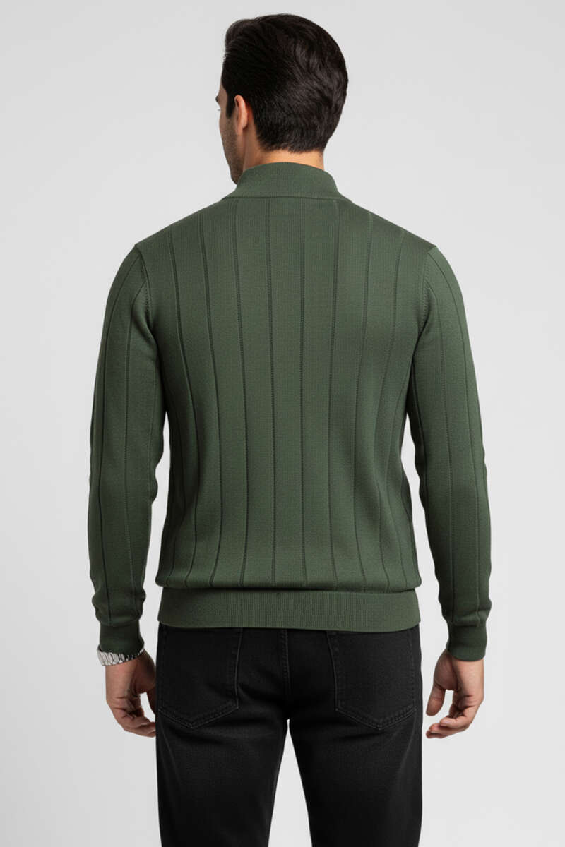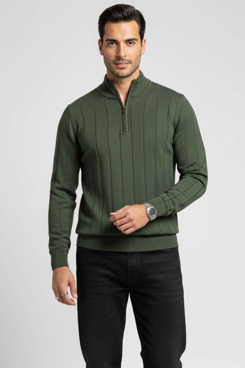Yaka Fermuarlı Triko Erkek Kazak Kahve