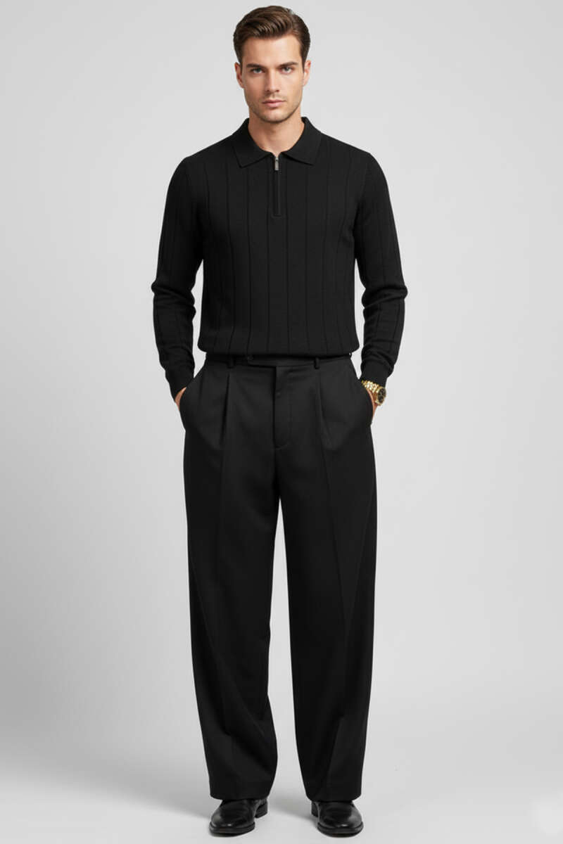 Gömlek Garnili Bürümcüklü Tunik İkili Takım Siyah
