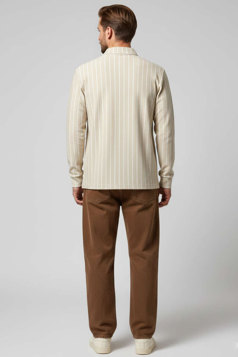 Polo Yaka Çizgi Detaylı Erkek Kazak Vizon