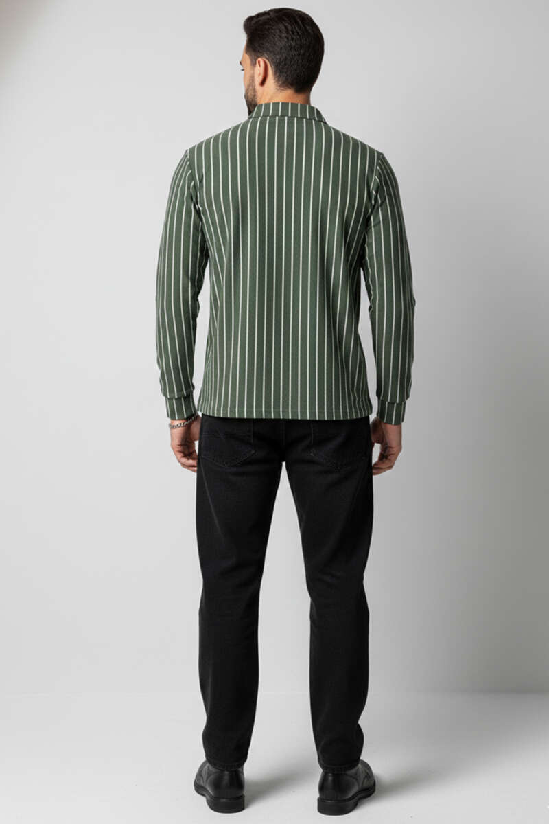 Polo Yaka Çizgili Uzun Kollu Erkek T-shirt Füme