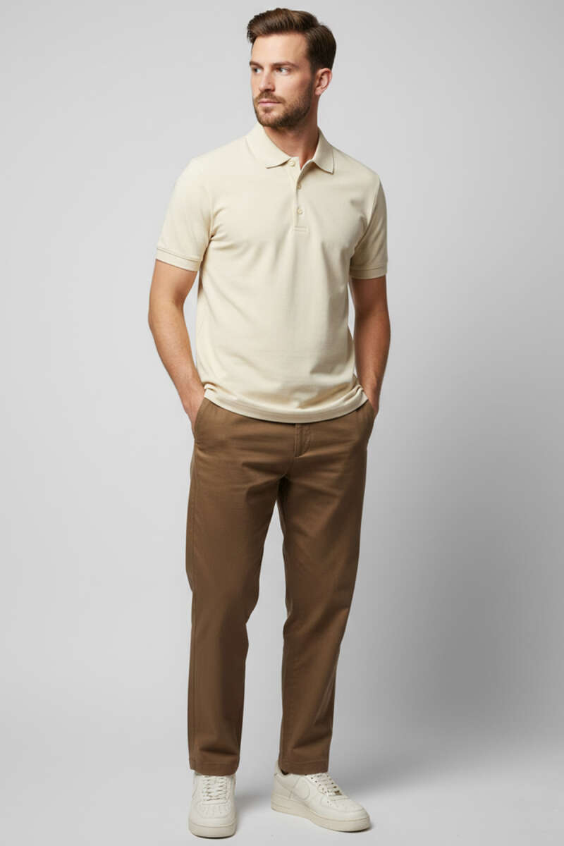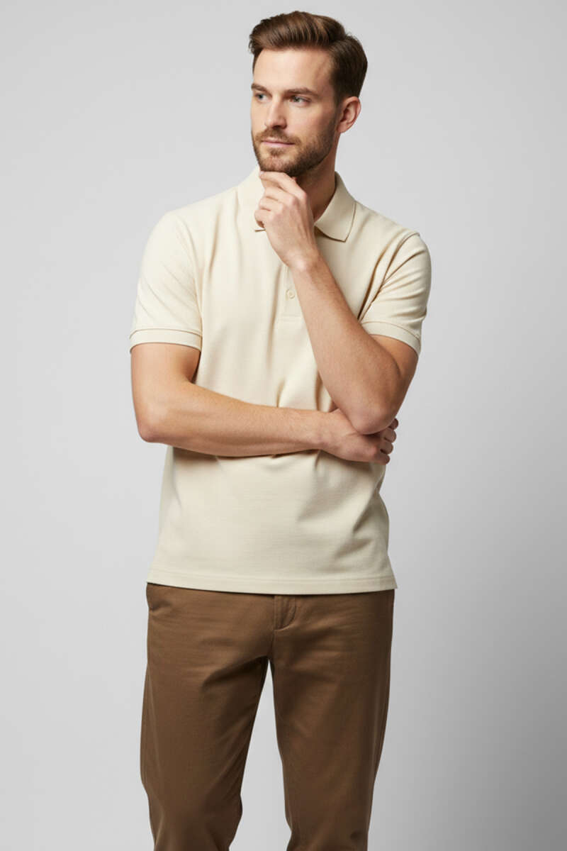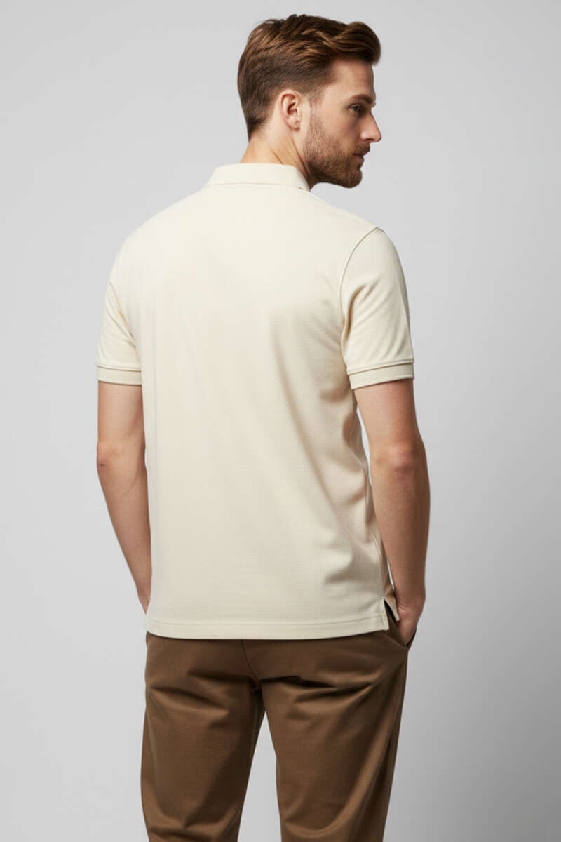 Polo Yaka Düğme Detaylı Erkek T-shirt Krem
