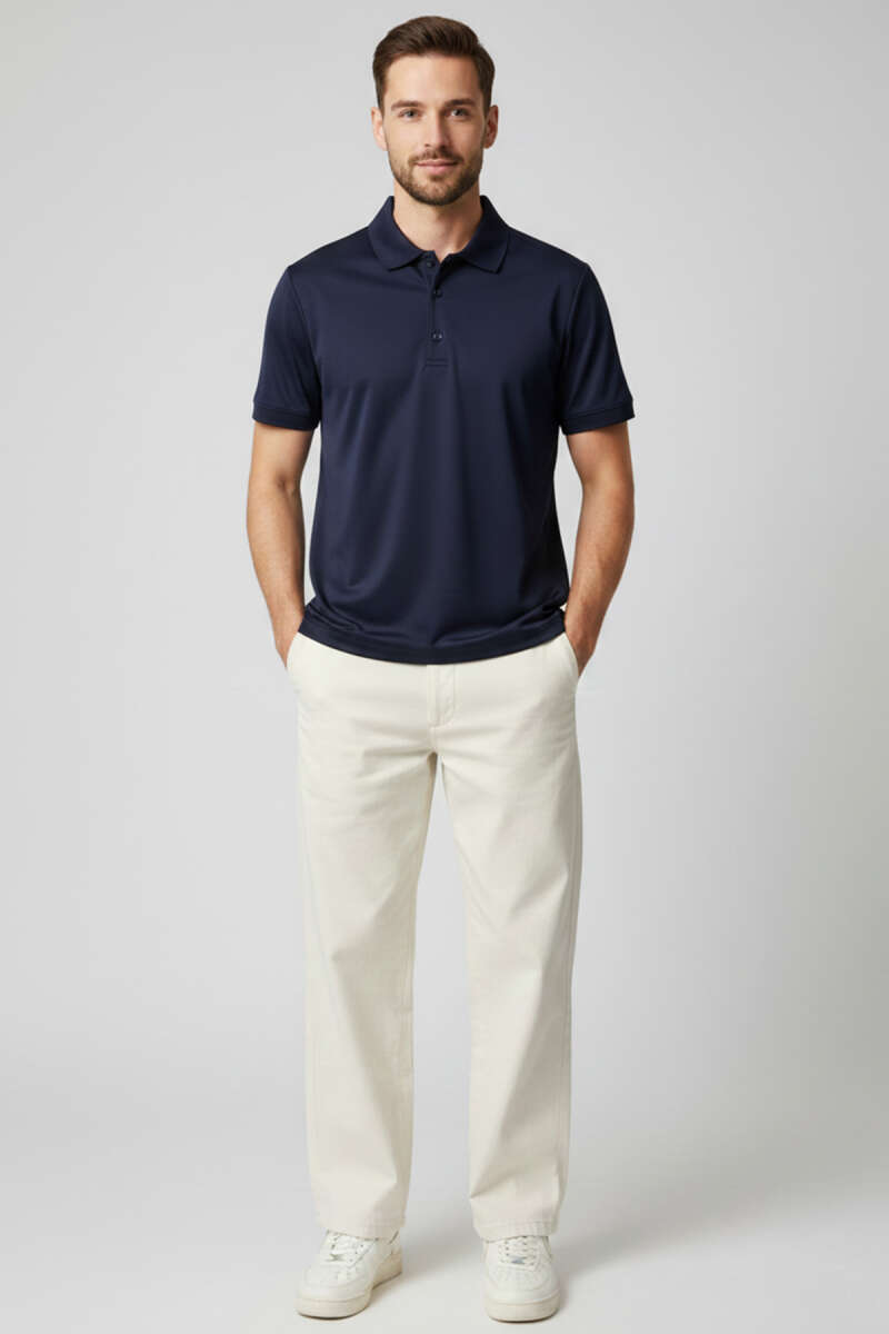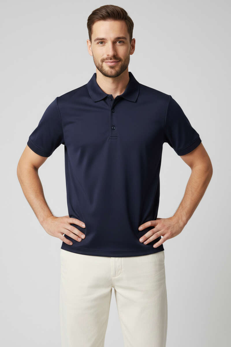 Polo Yaka Düğme Detaylı Erkek T-shirt Lacivert
