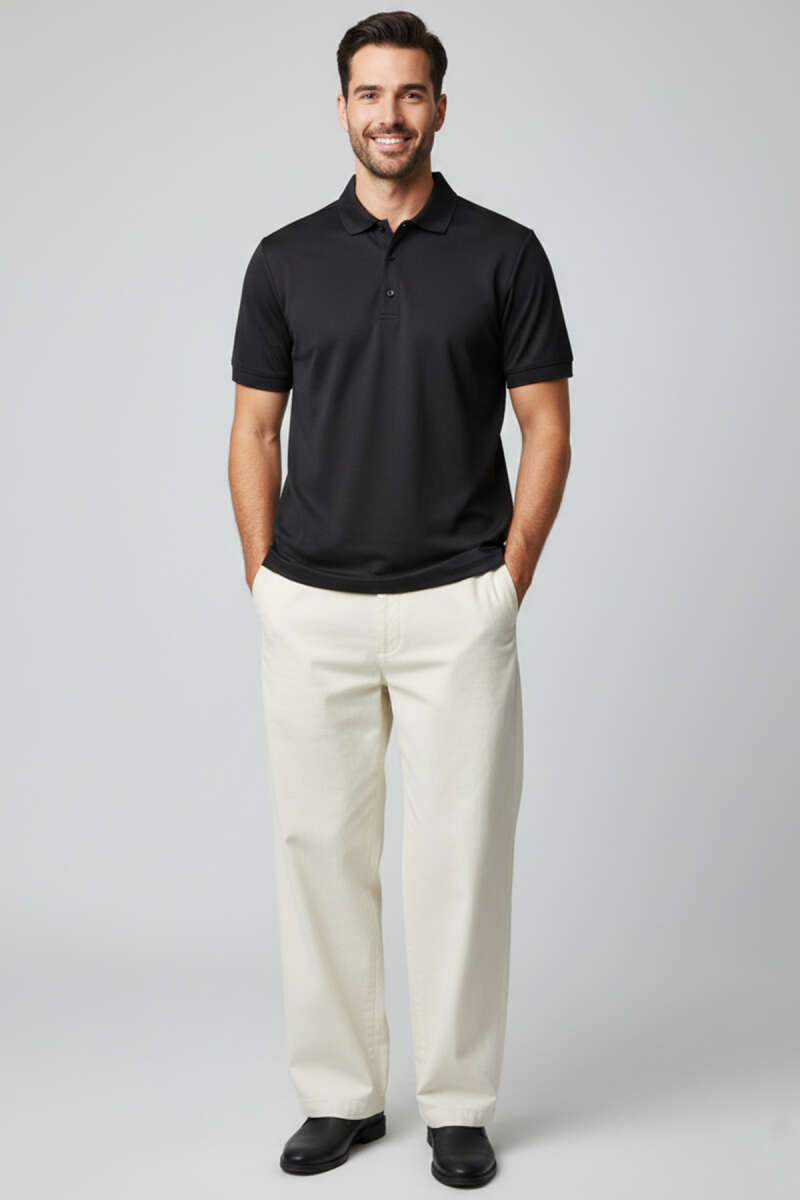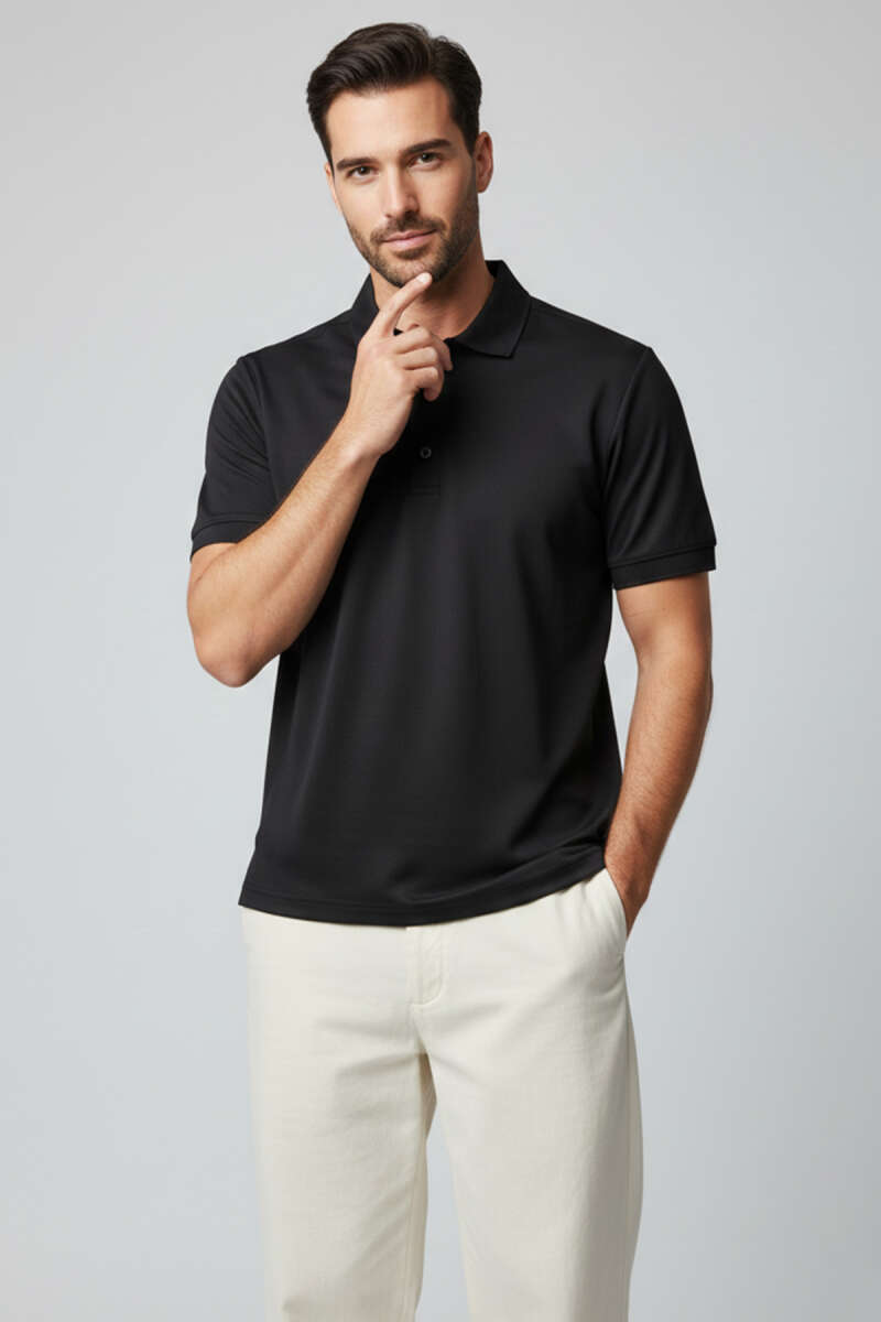 Polo Yaka Düğme Detaylı Erkek T-shirt Siyah
