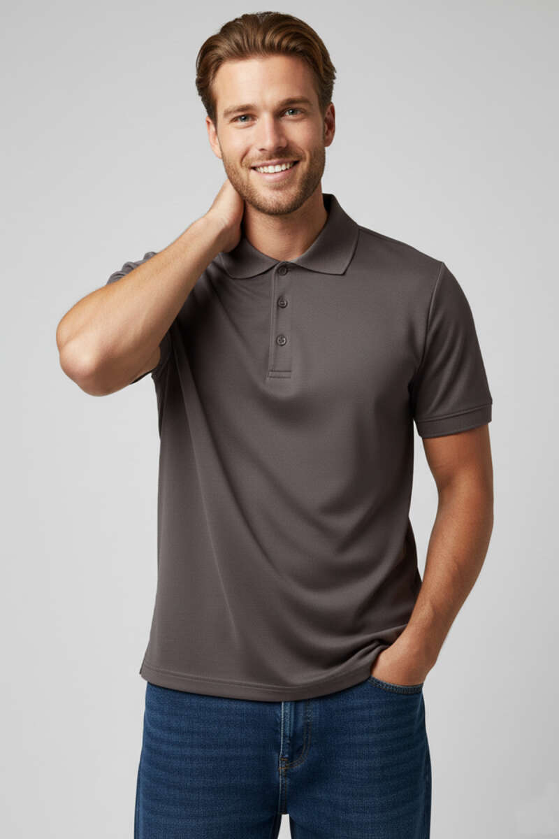 Polo Yaka Düğme Detaylı Erkek T-shirt Vizon
