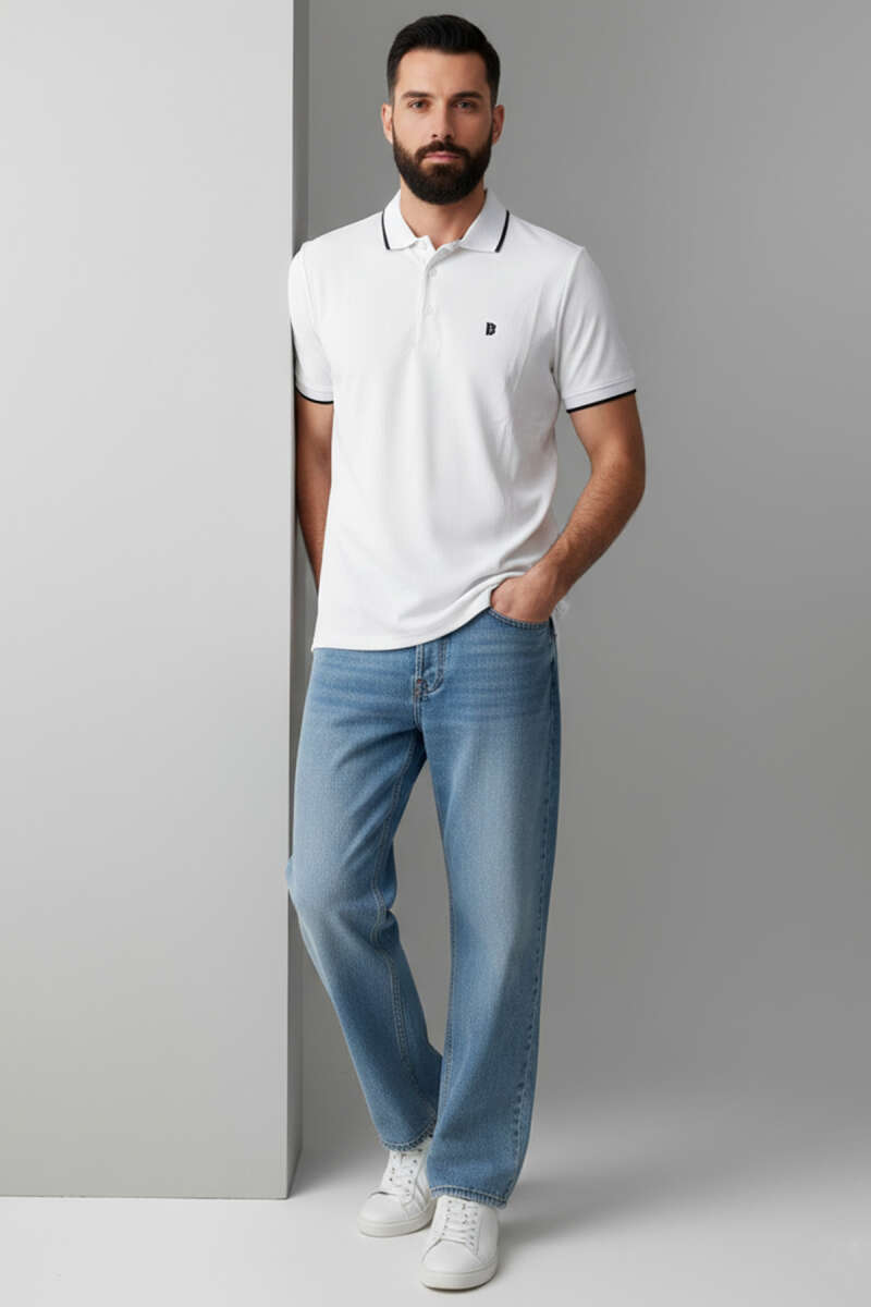 Polo Yaka Garnili Erkek T-shirt Beyaz
