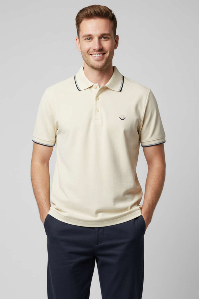 Polo Yaka Düğmeli Basic Erkek T-shirt Krem