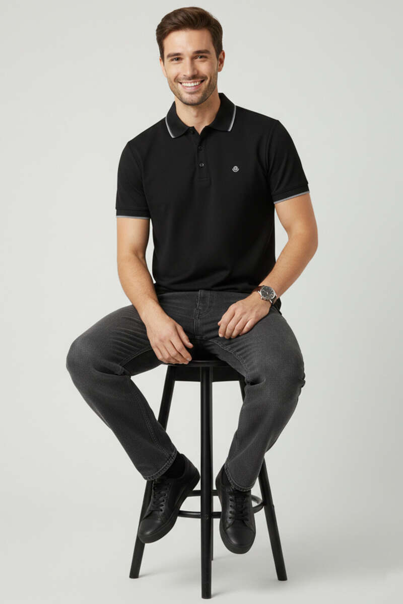 Polo Yaka Düğmeli Basic Erkek T-shirt Siyah