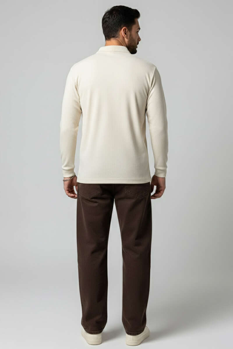 Bisiklet Yaka Manşetli Erkek Sweatshirt Kahve
