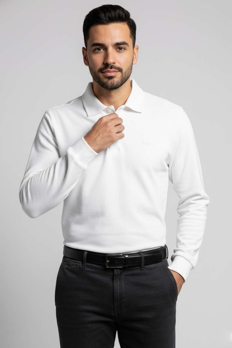 Polo Yaka Örme Erkek Sweatshirt Ekru