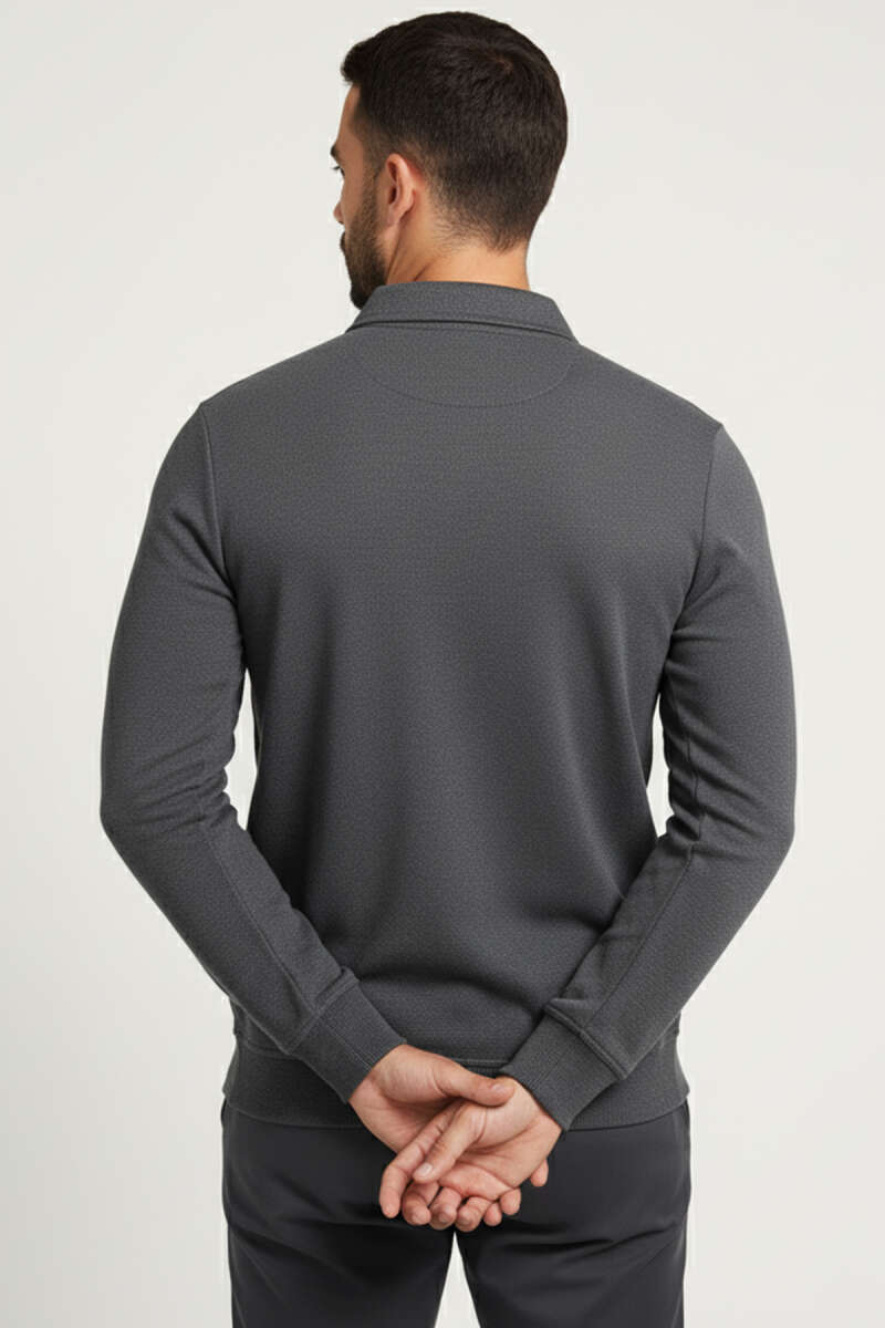 Polo Yaka Örme Erkek Sweatshirt Füme