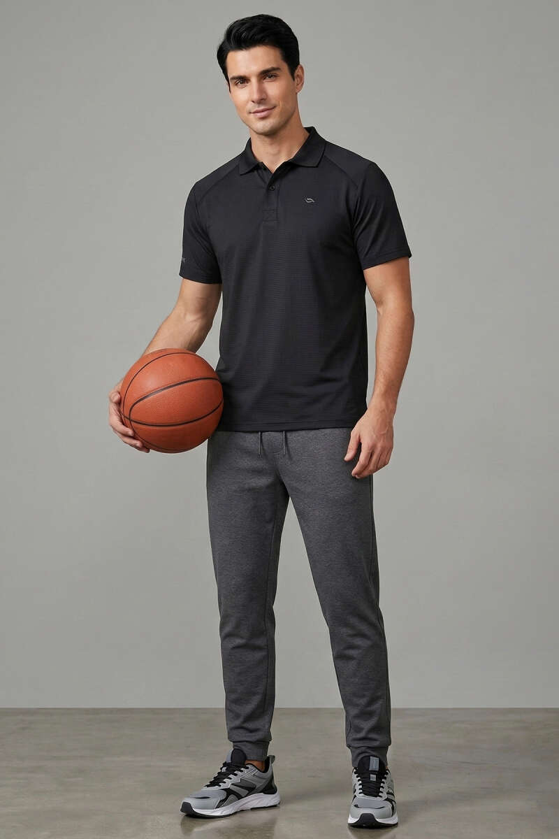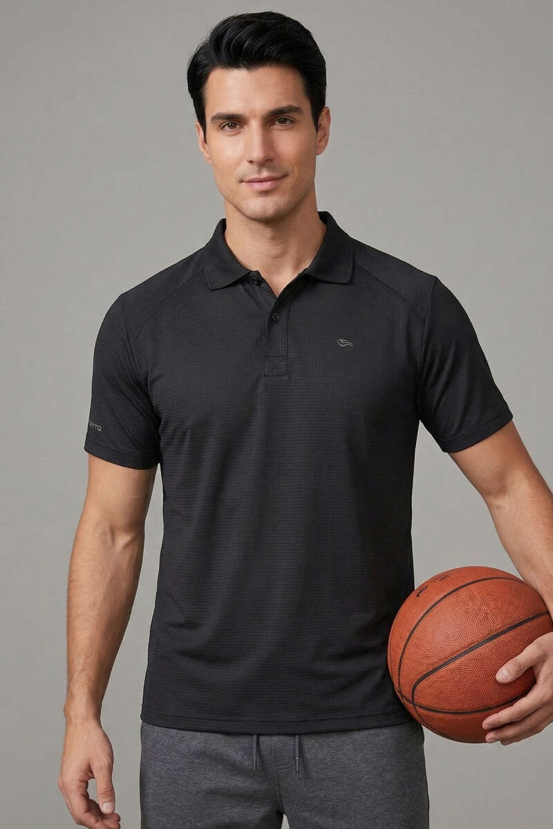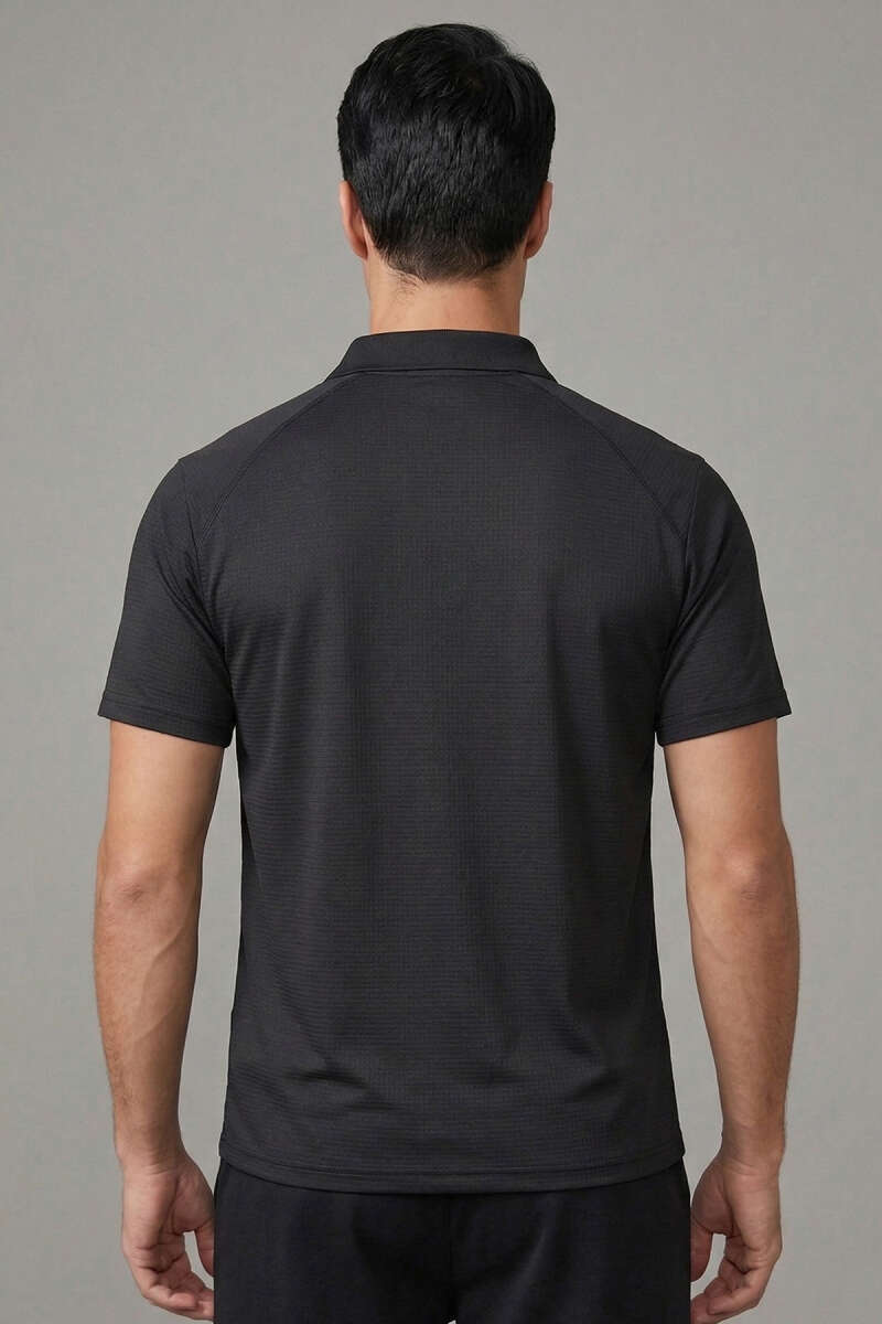 Polo Yaka Düğmeli Erkek T-shirt Siyah