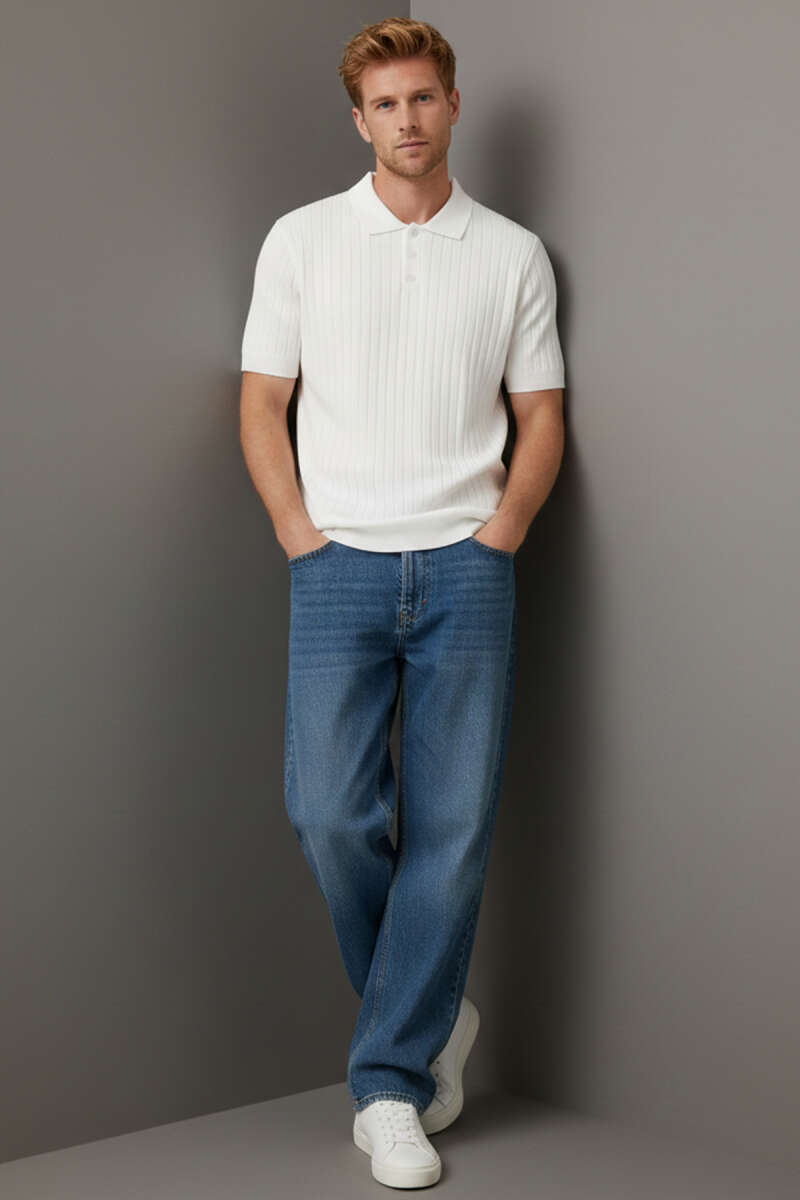Polo Yaka Düğmeli Merserize T-Shirt Beyaz