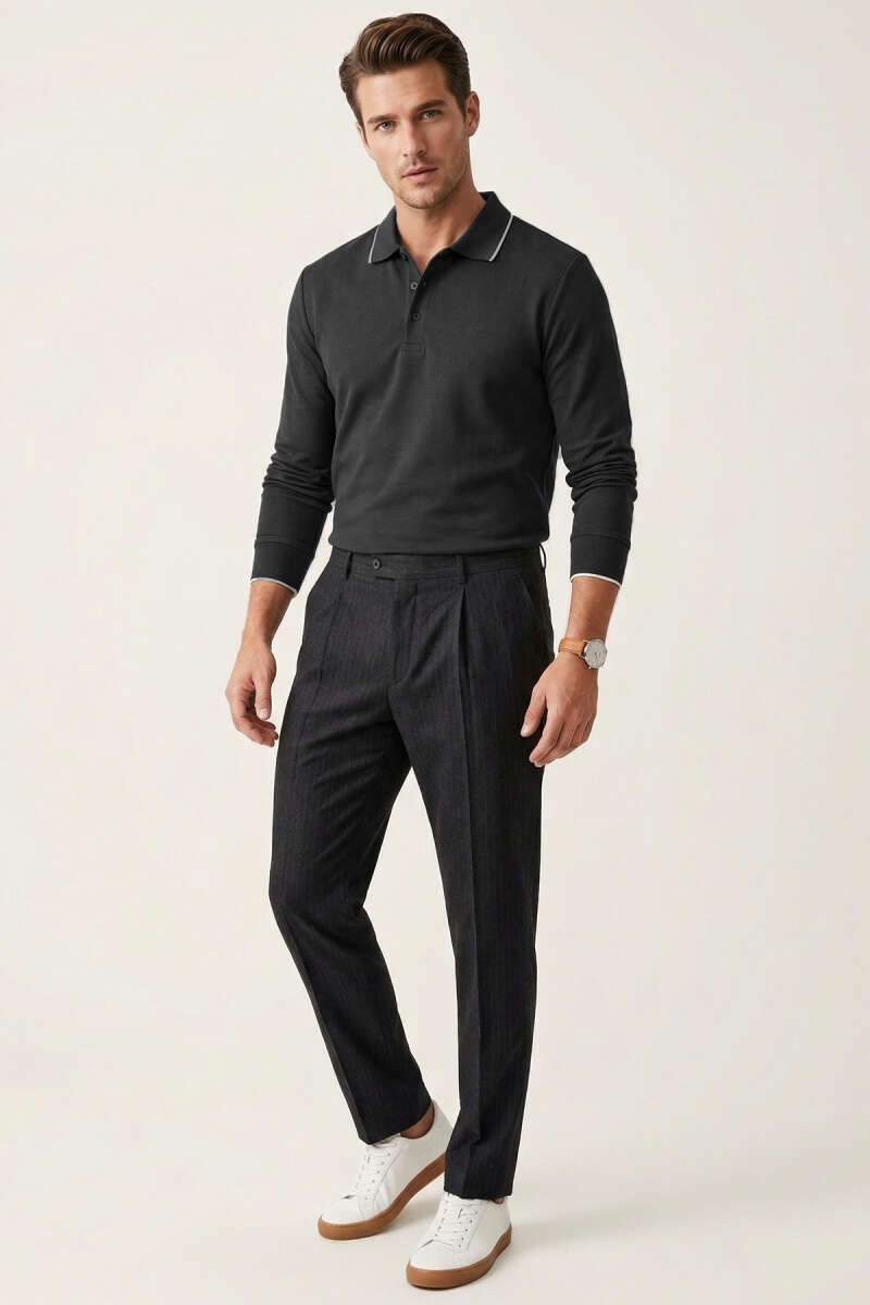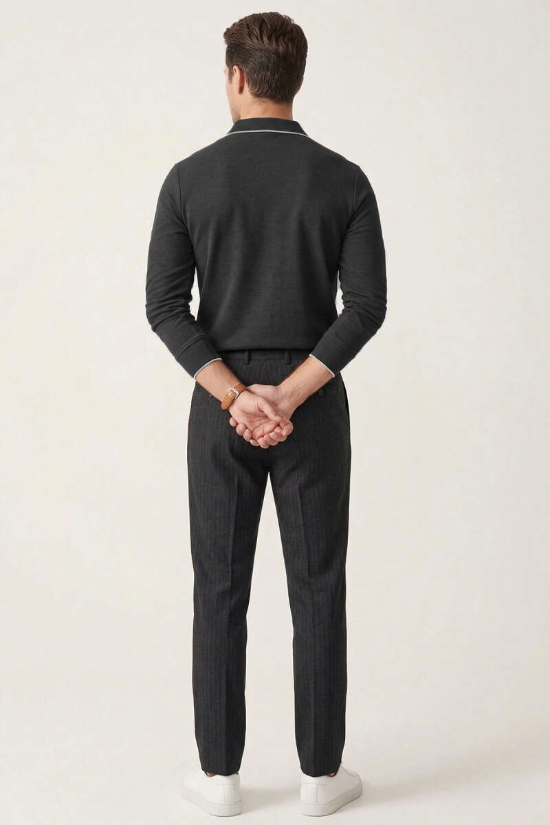 Polo Yaka Düğmeli Uzun Kol Sweatshirt Füme