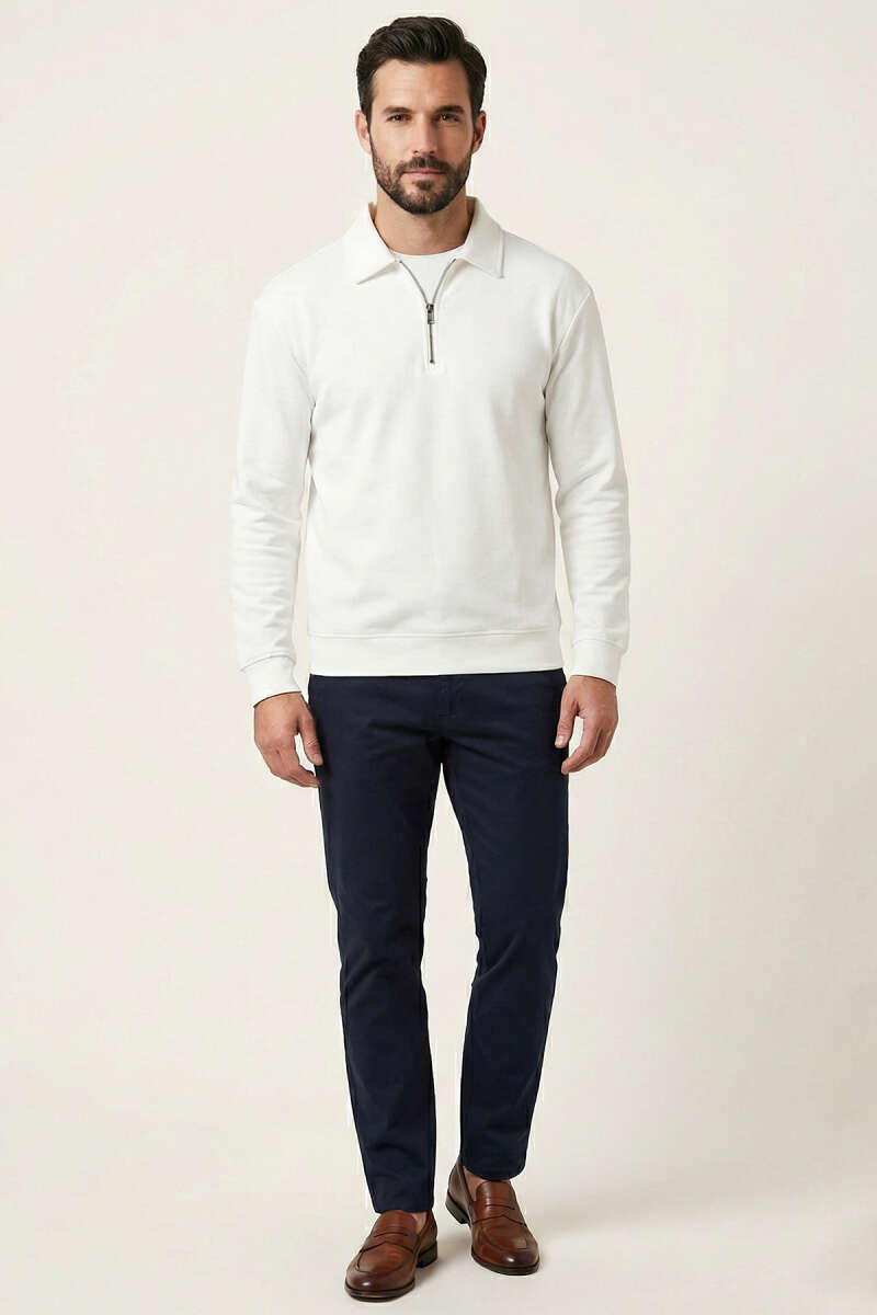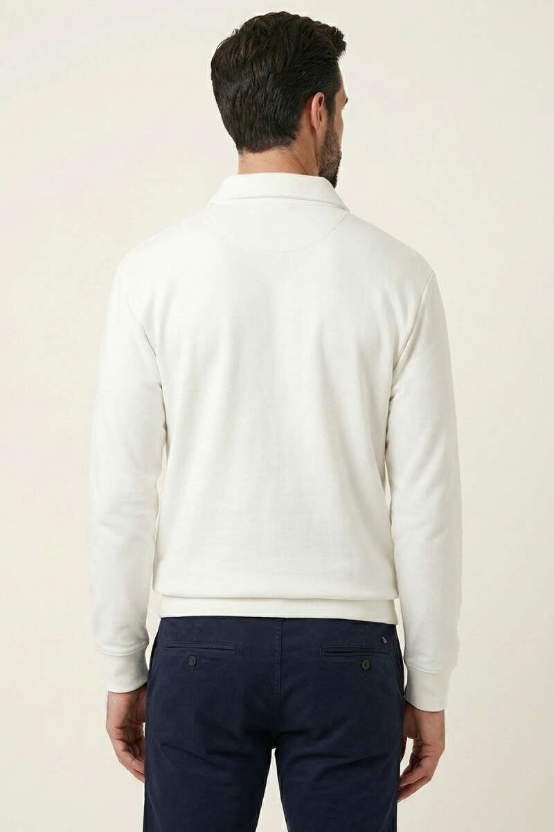Polo Yaka Düğmeli Uzun Kol Sweatshirt Kahve