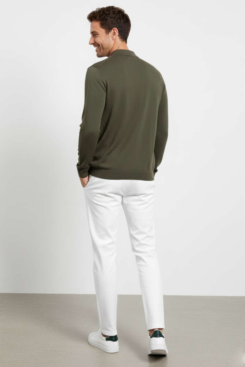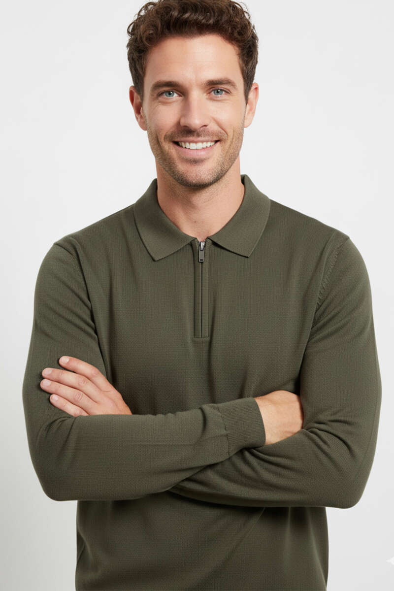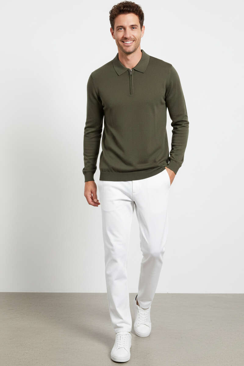 Polo Yaka Fermuarlı Merserize T-shirt Ekru