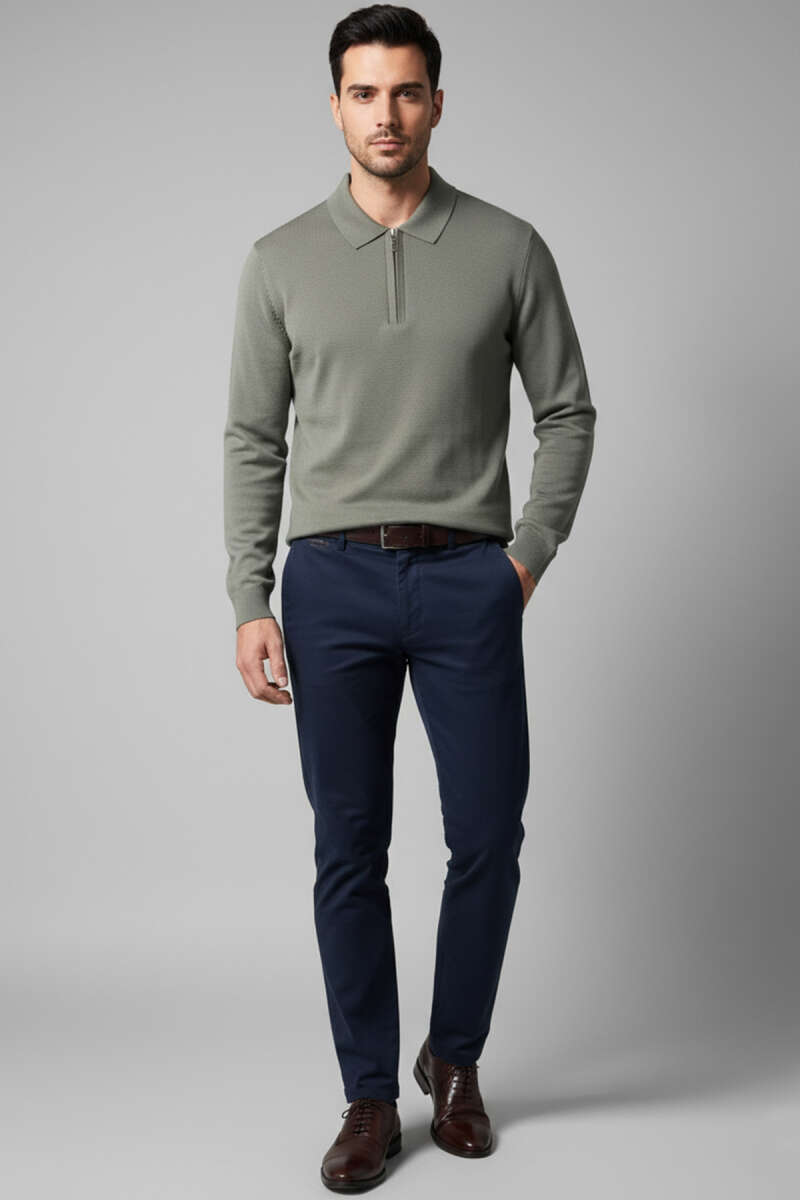 Yarım Balıkçı Basic Erkek Triko Kazak Lacivert