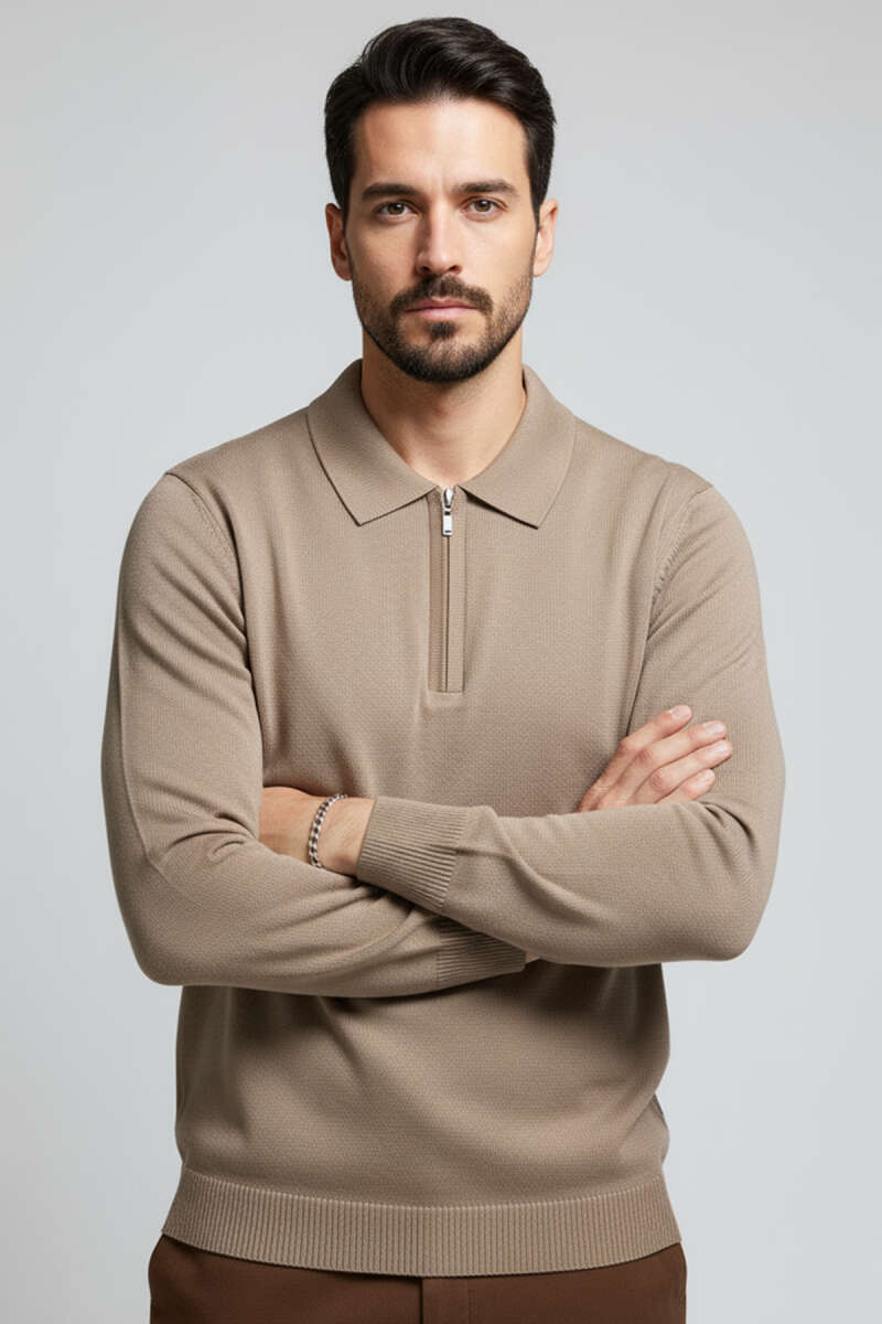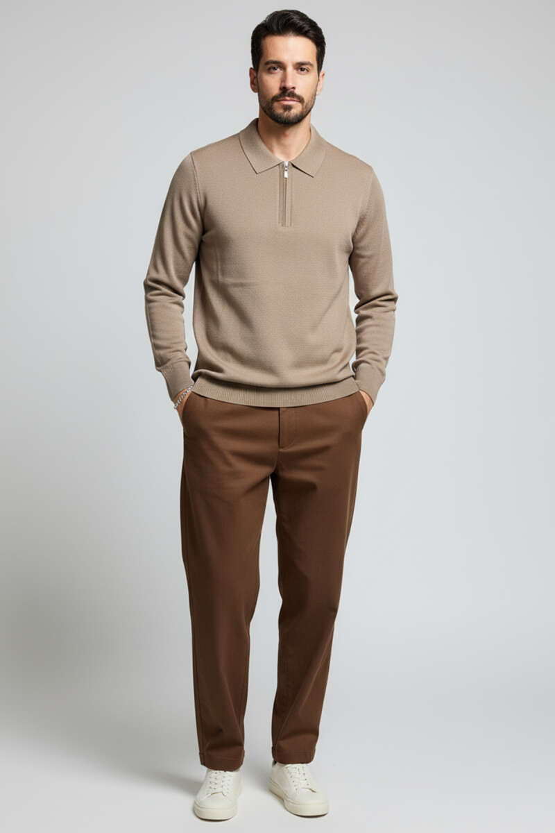 Yumoş Erkek Örme Triko Kazak Kahve