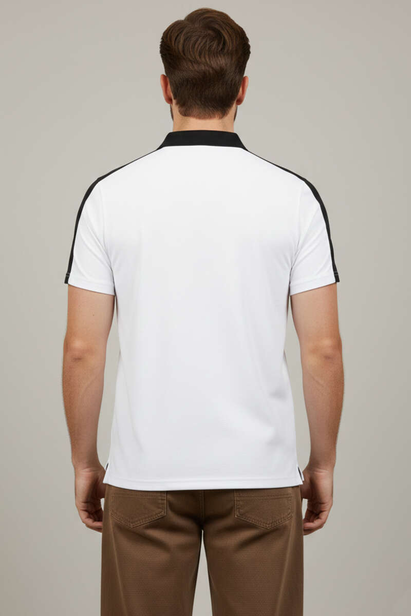 Polo Yaka Garnili Erkek T-shirt Beyaz