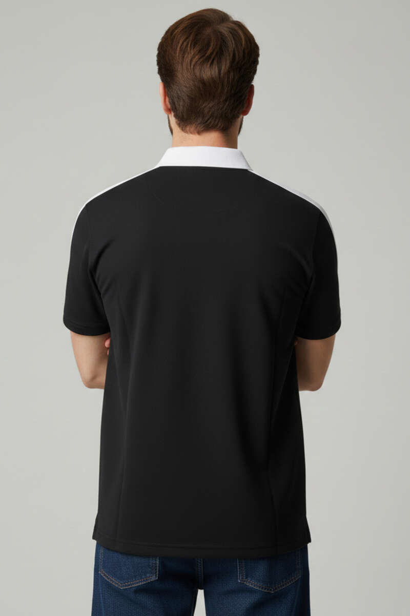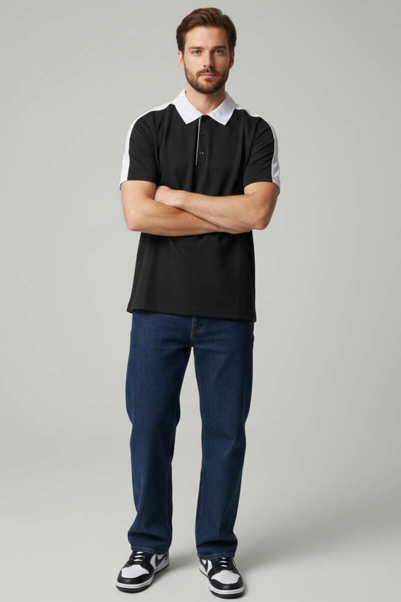 Polo Yaka Garnili Erkek T-shirt Siyah