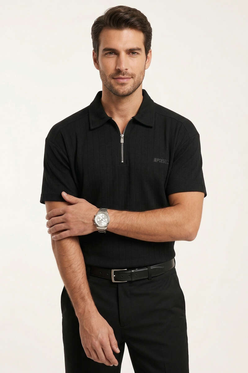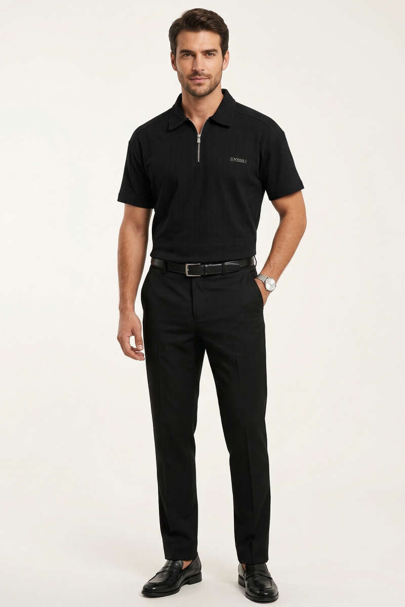 Polo Yaka Im Possible Baskılı Erkek T-shirt Siyah