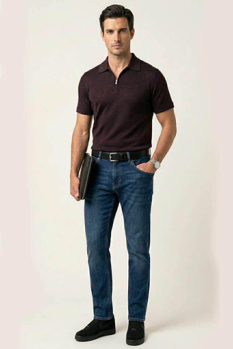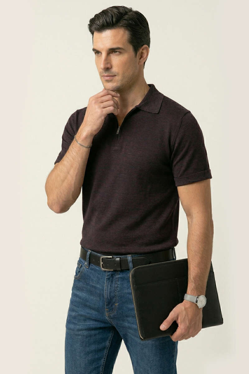 Polo Yaka Merserize Erkek T-shirt Bordo