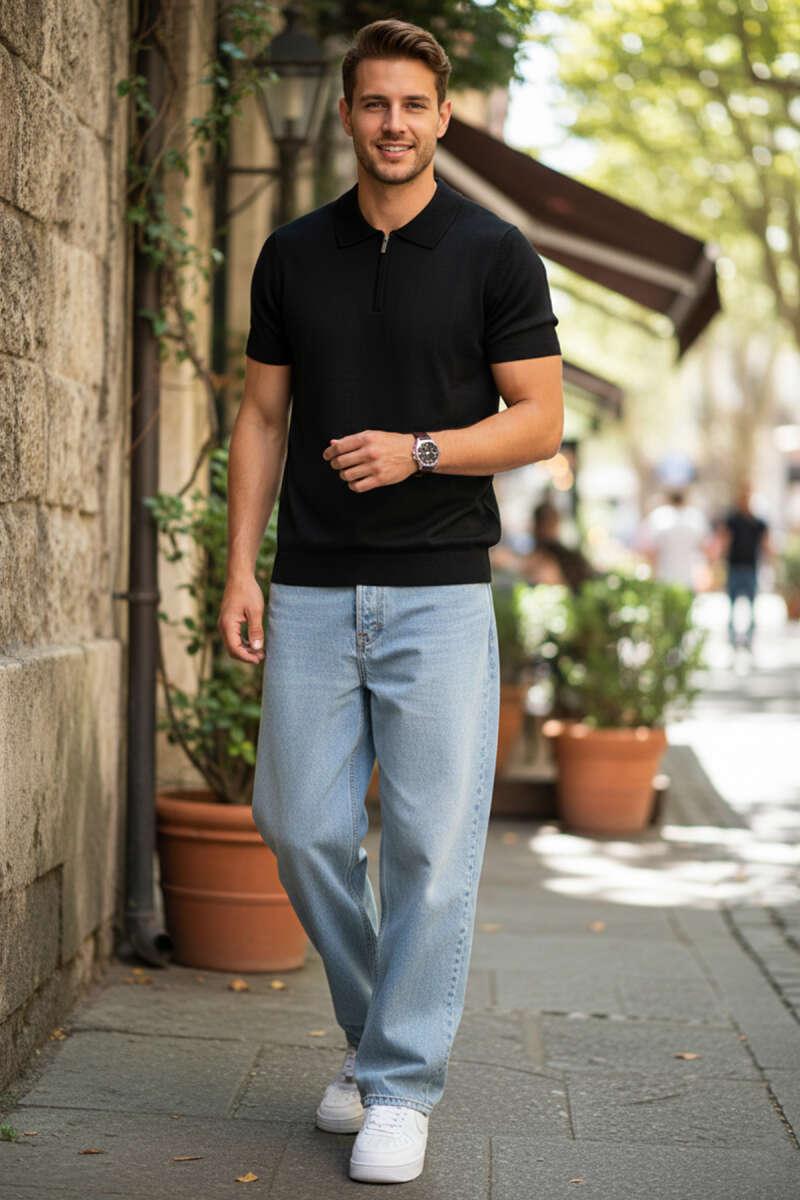 Polo Yaka Garnili Erkek T-shirt Siyah