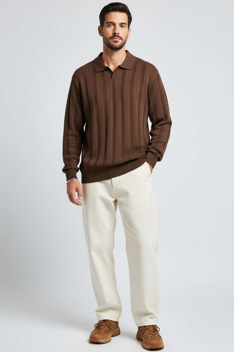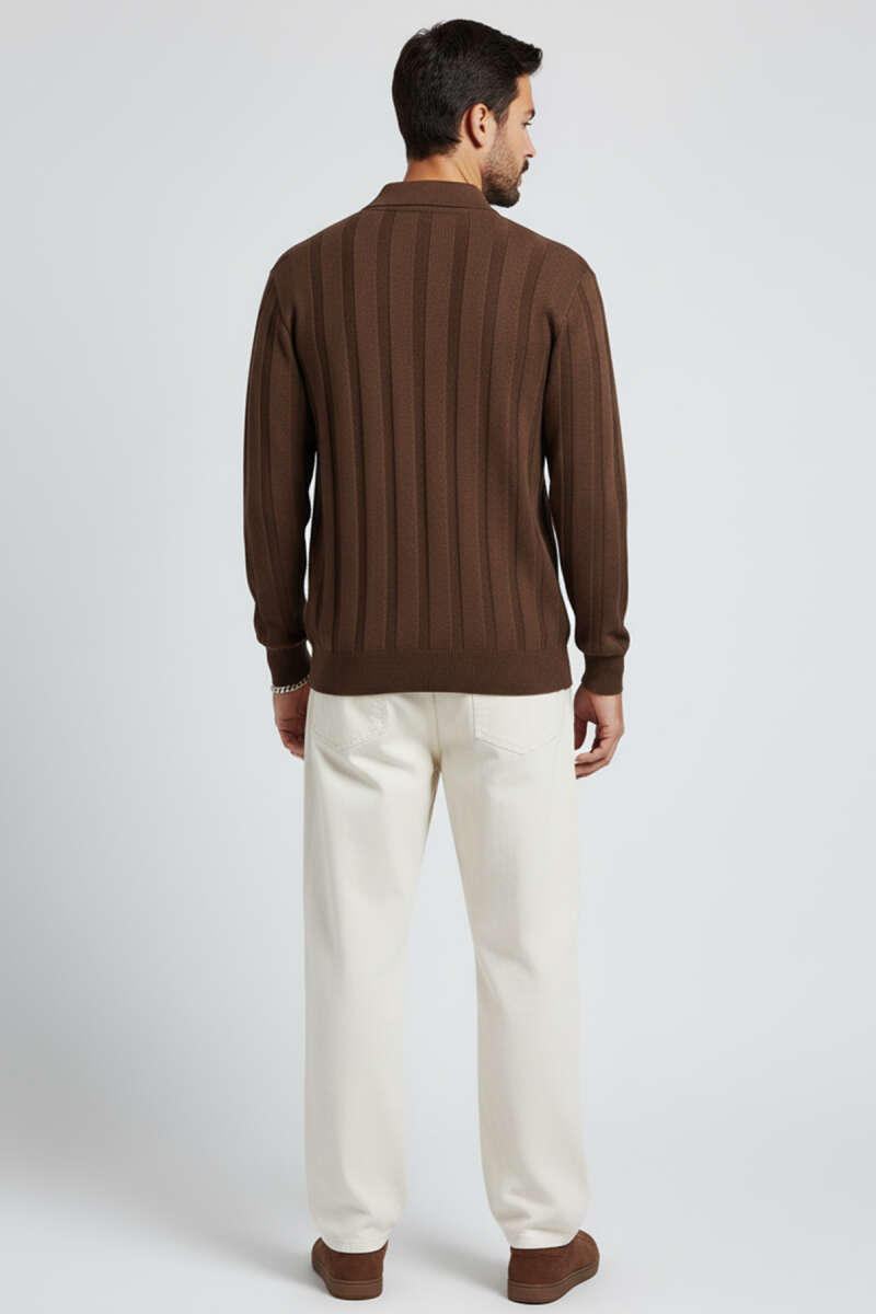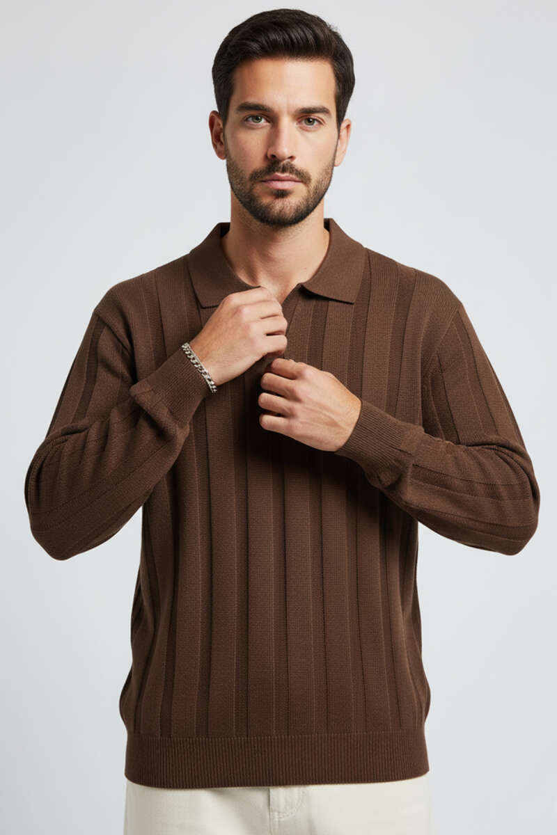 Polo Yaka Dikişli Kazak Kahve