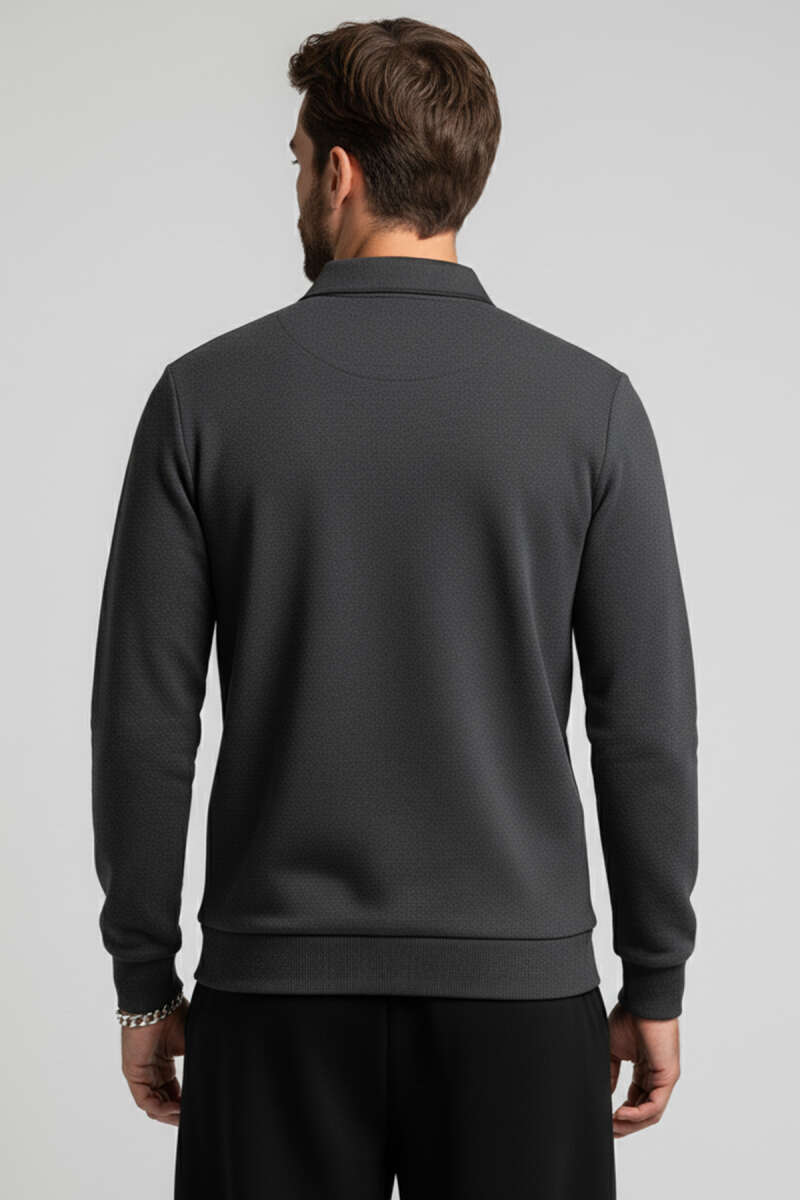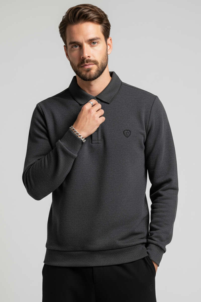 Polo Yaka Selanik Pamuklu Sweatshirt Siyah