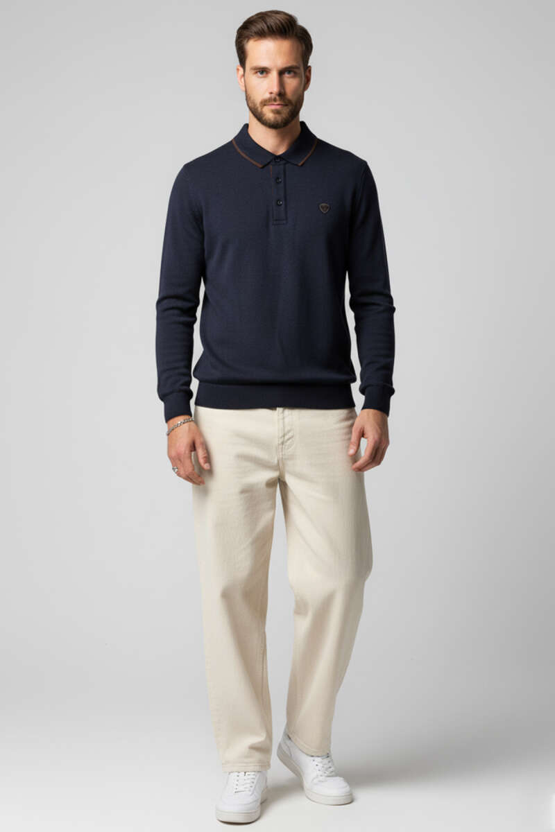 Polo Yaka Selanik Pamuklu Sweatshirt Bej
