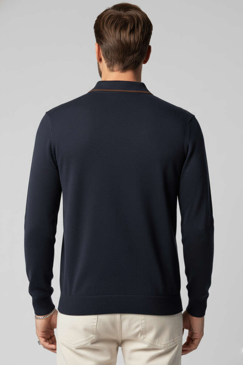 Polo Yaka Selanik Pamuklu Sweatshirt Siyah