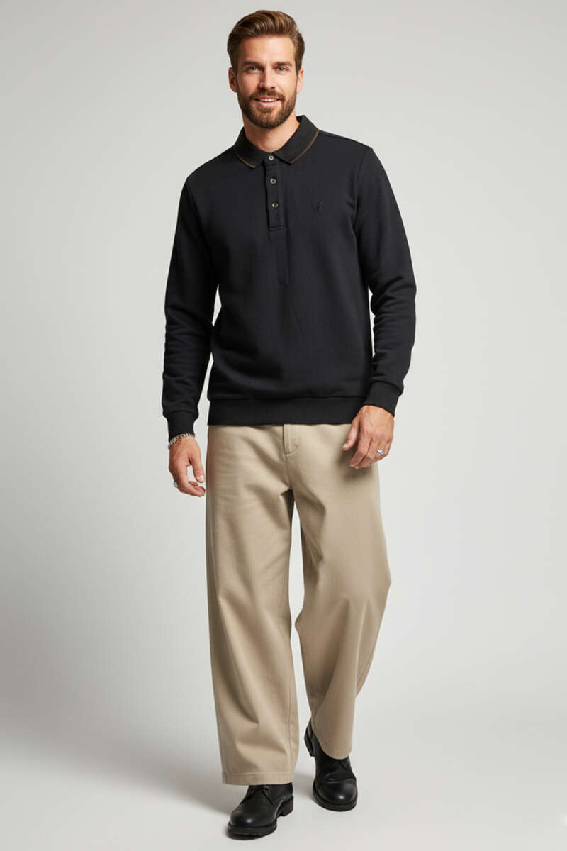 Polo Yaka Selanik Pamuklu Sweatshirt Vizon