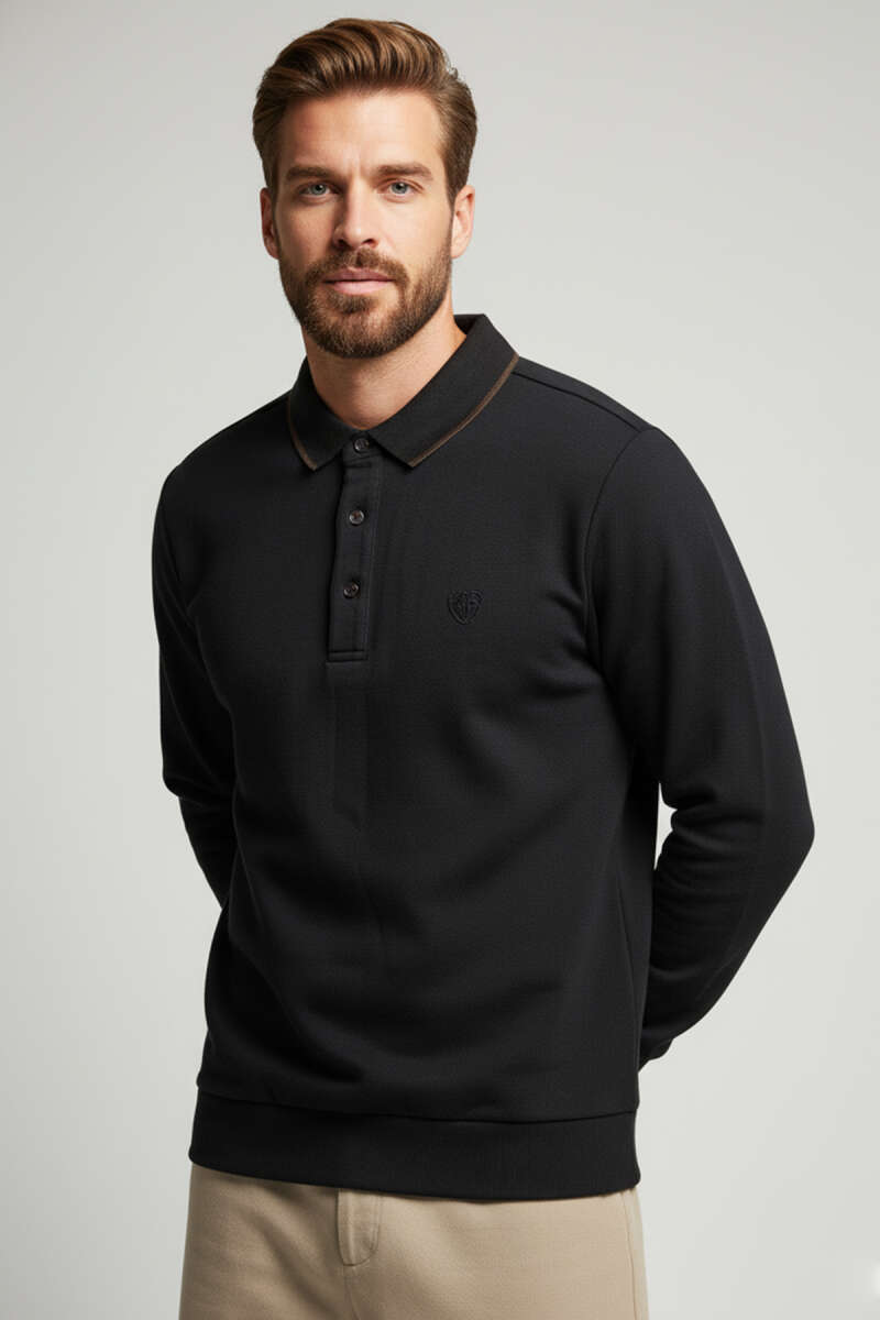 Polo Yaka Selanik Pamuklu Sweatshirt Lacivert
