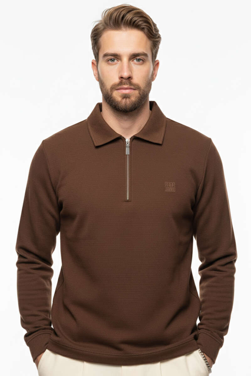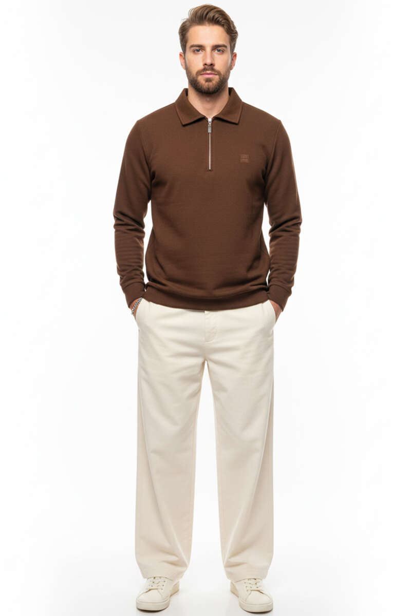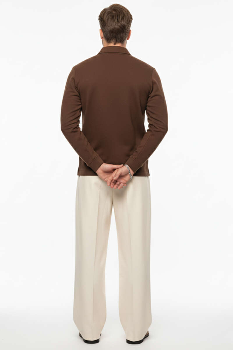 Gömlek Yaka Yatay Çizgili Triko Kazak Haki