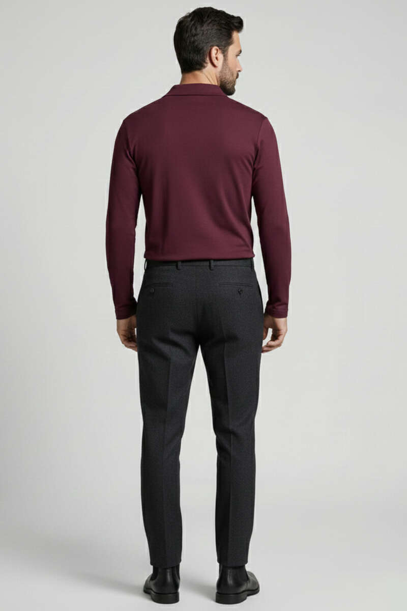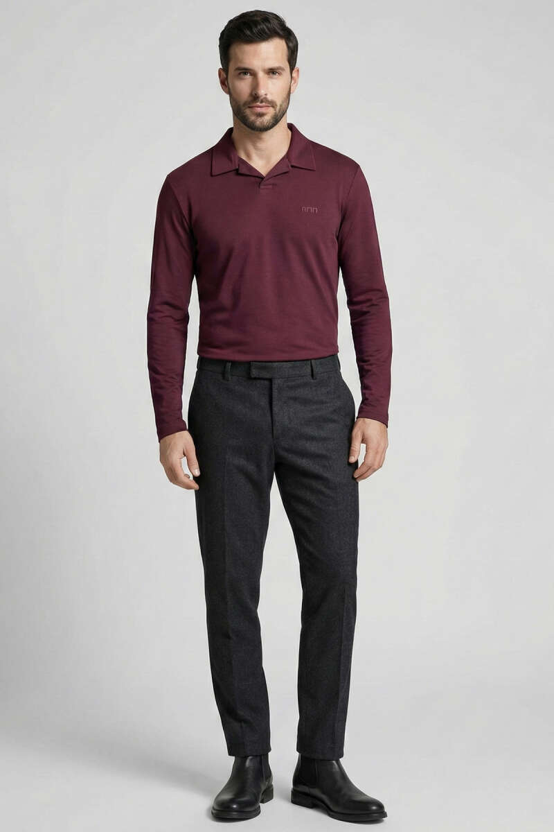 Polo Yaka Uzun Kol Erkek T-shirt Füme