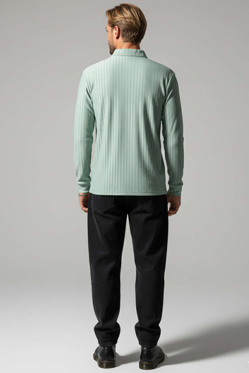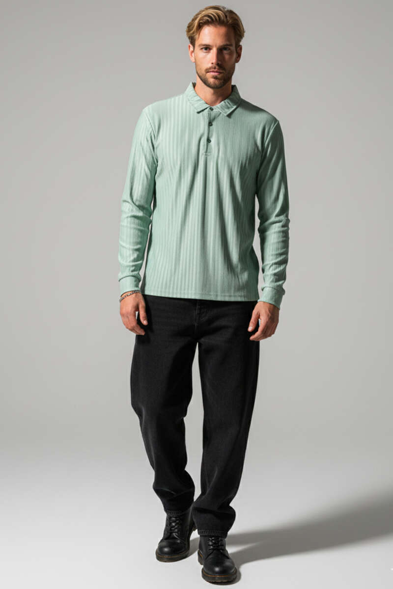 Polo Yaka Uzun Kollu Erkek T-shirt Yeşil