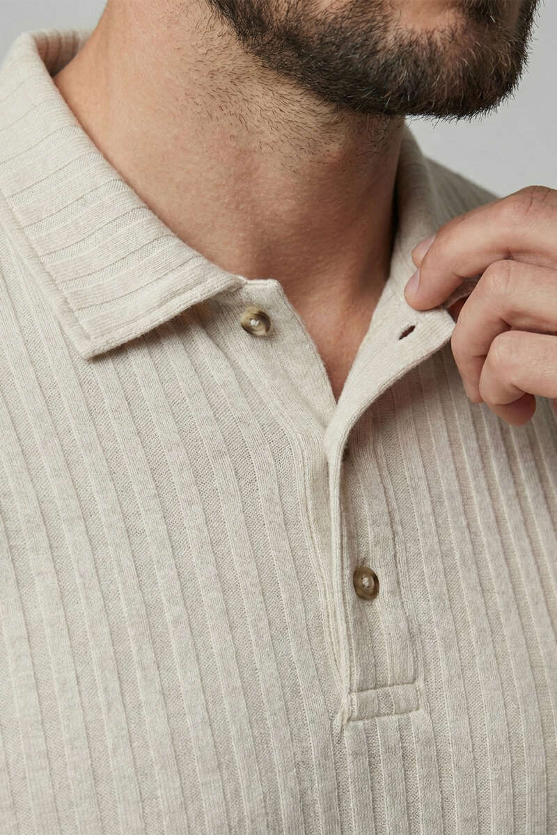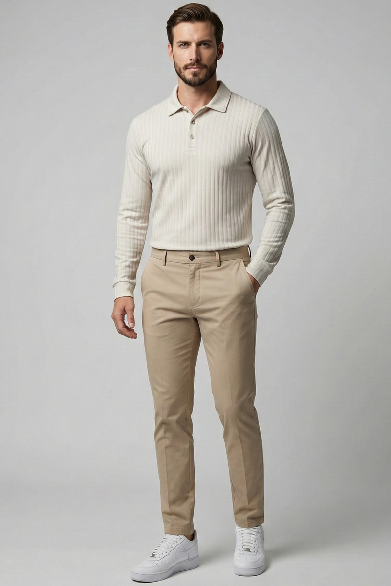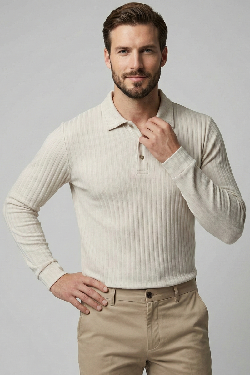 Polo Yaka Uzun Kollu Erkek Tişört Ekru