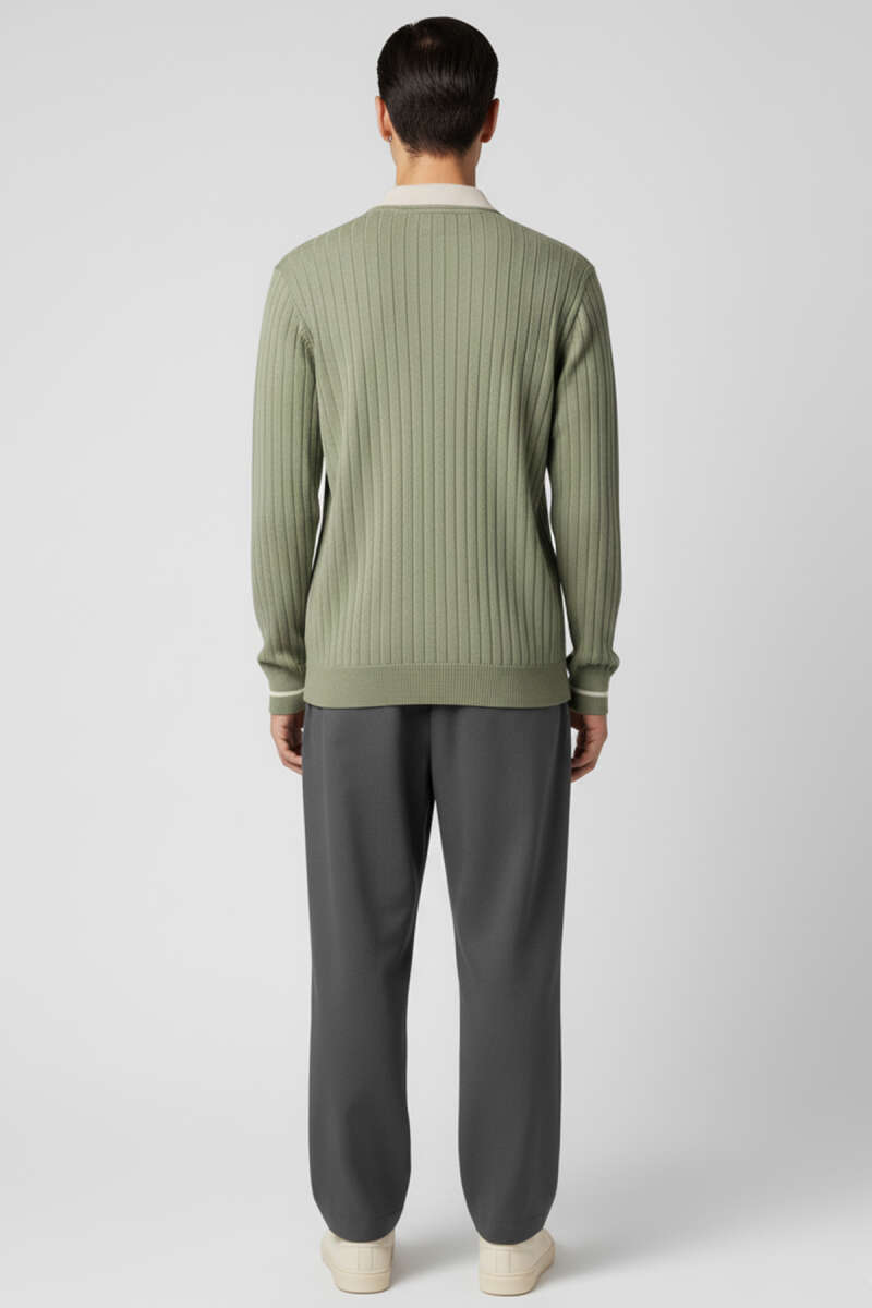 Polo Yaka Uzun Kollu Erkek Triko Sweatshirt Beyaz