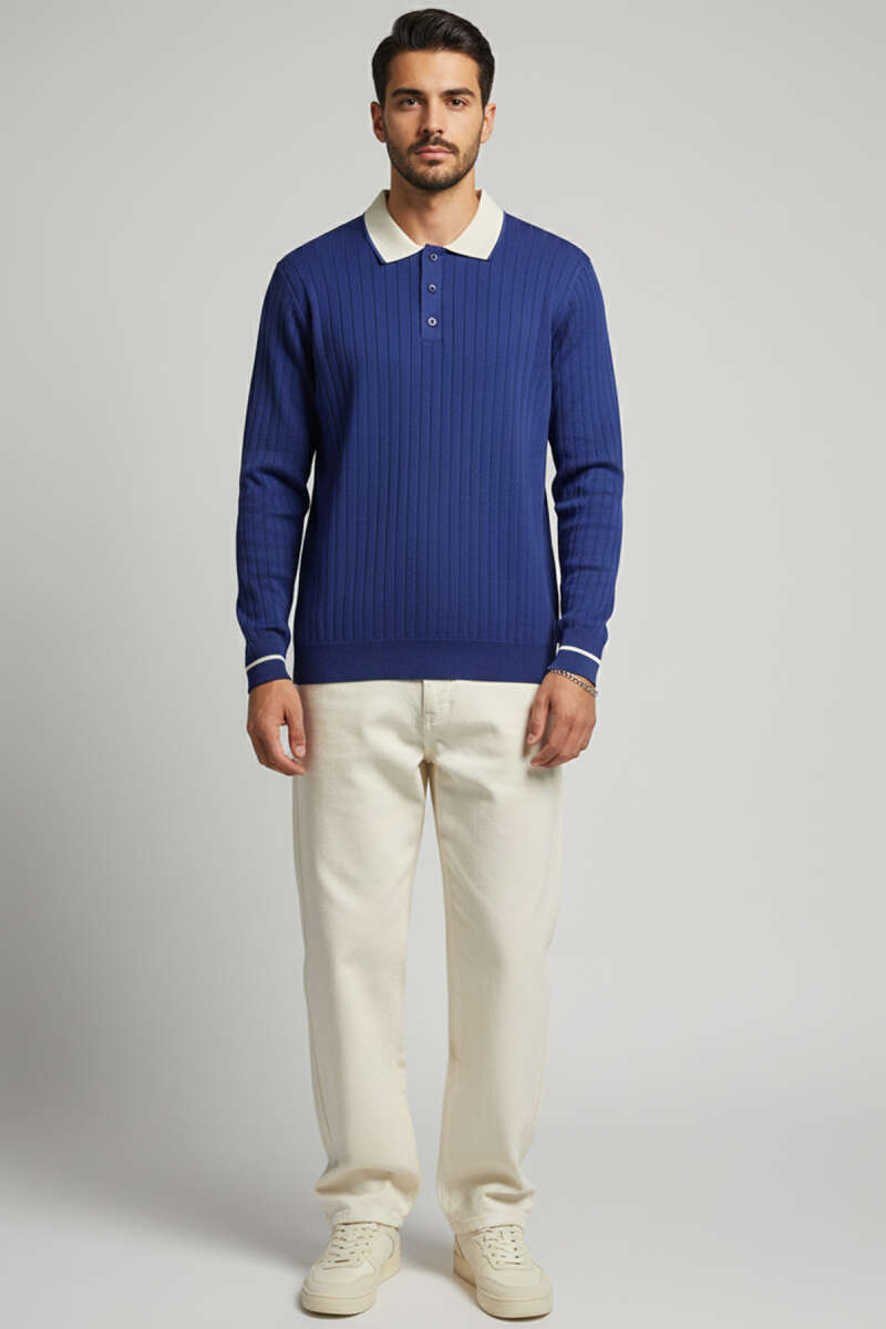 Dik Yaka Çıtçıtlı Erkek Sweatshirt Lacivert