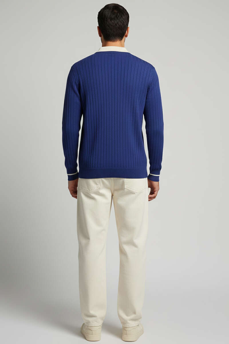 Polo Yaka Fermuarlı Basic Erkek Sweatshirt Nefti