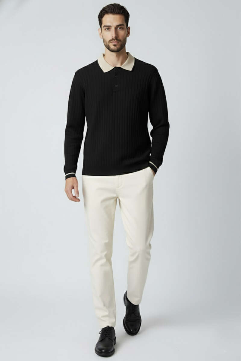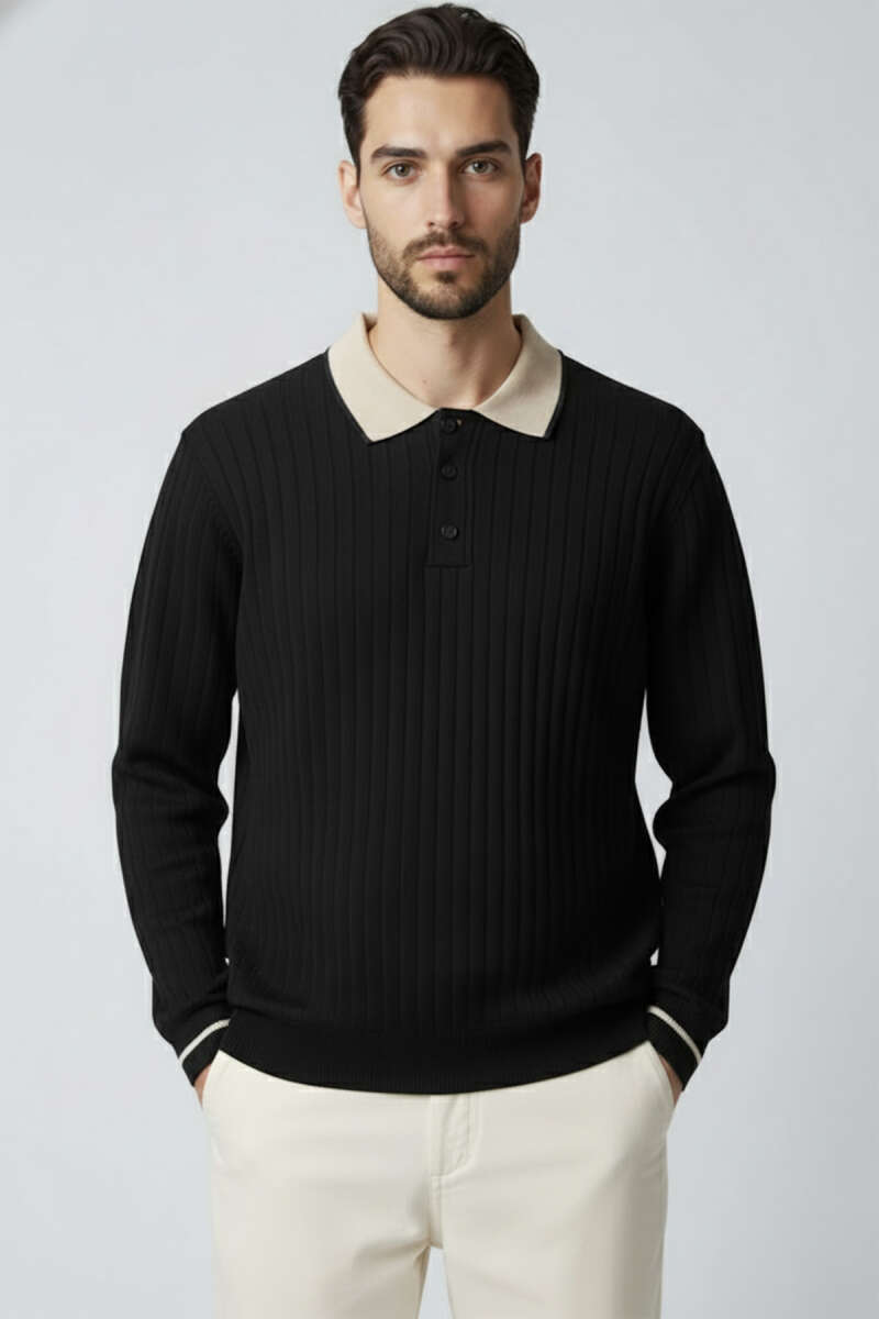 Polo Yaka Fermuarlı Basic Erkek Sweatshirt Siyah
