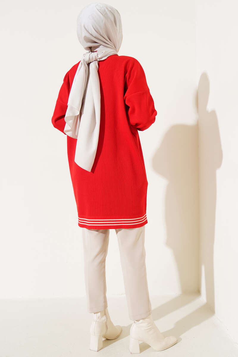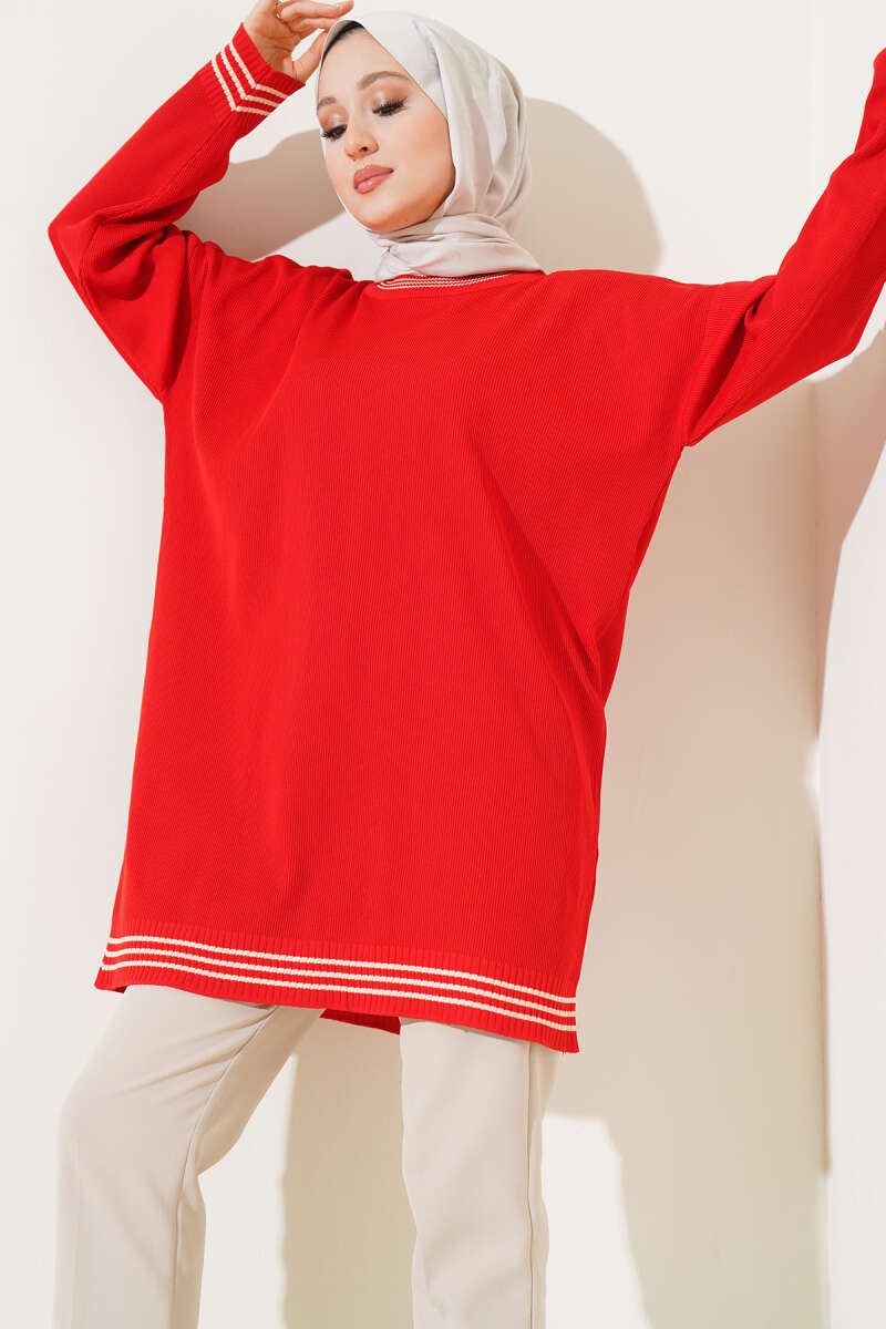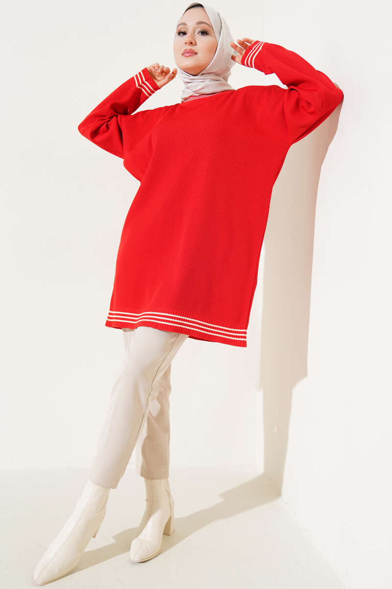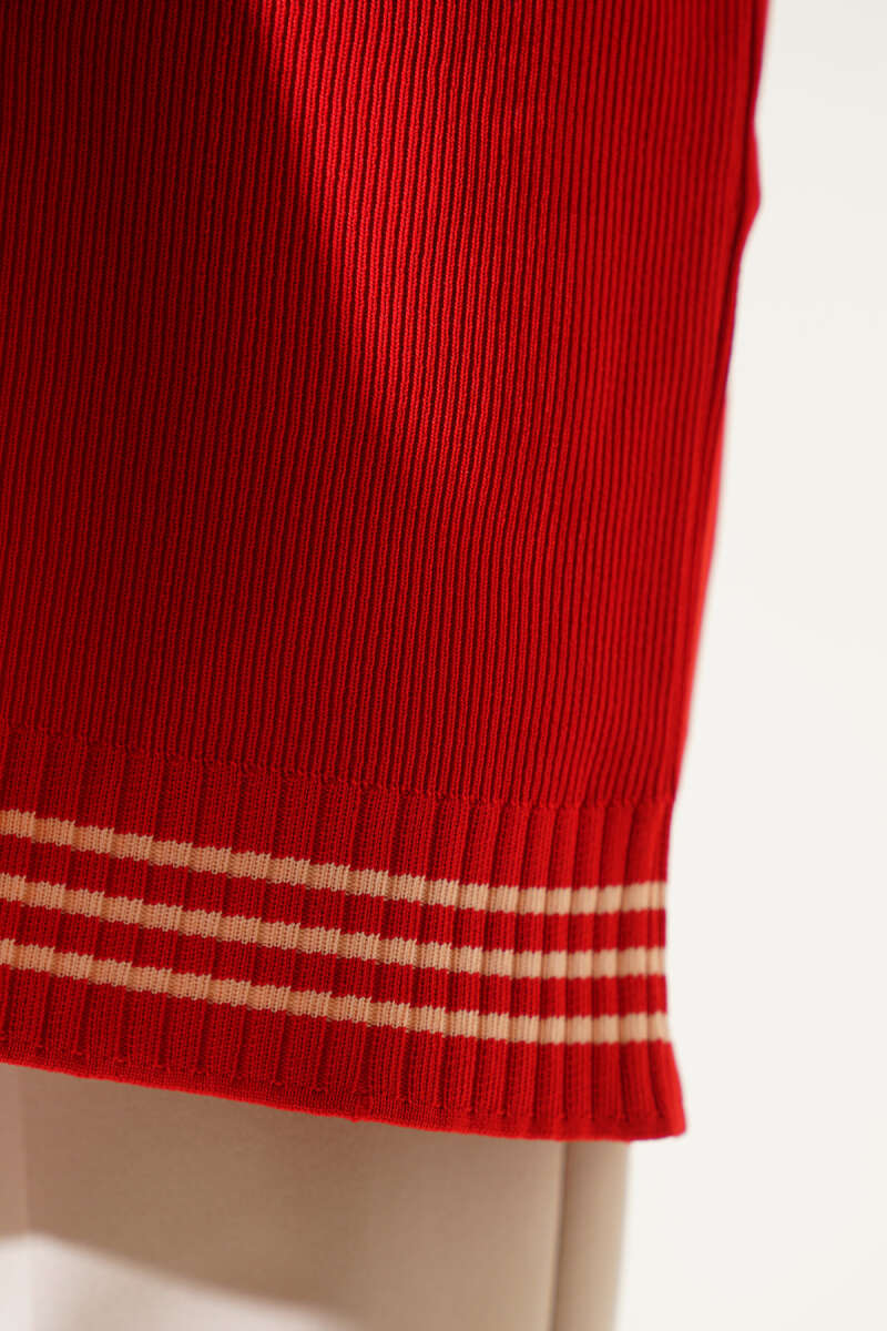 Polyelit Çizgi Detaylı Tunik Kırmızı
