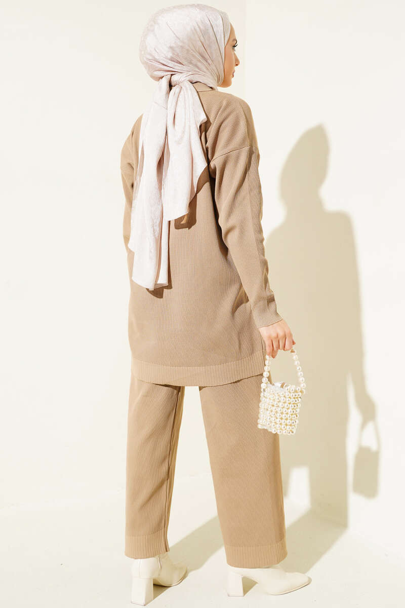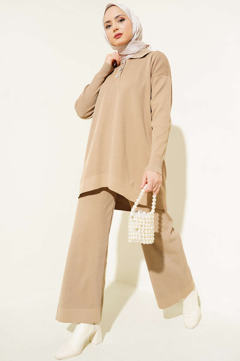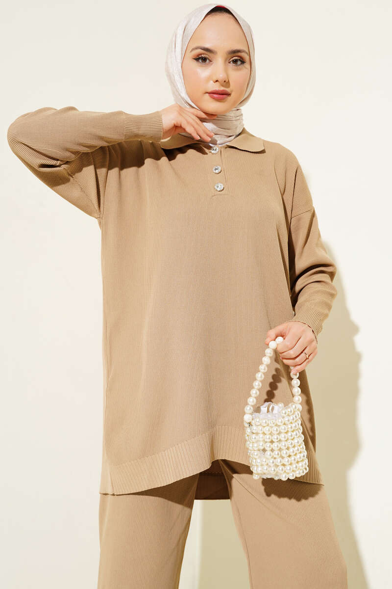 Polyelit Gömlek Yaka İkili Takım Camel