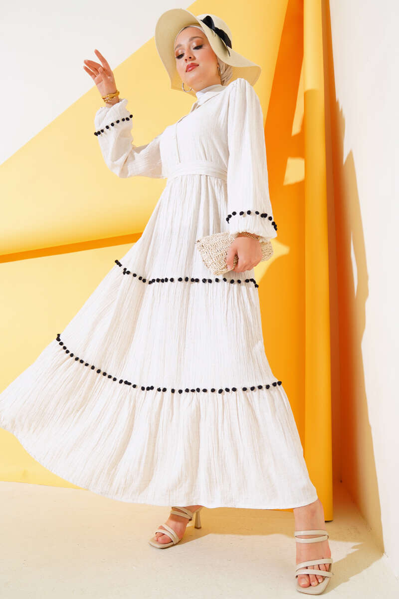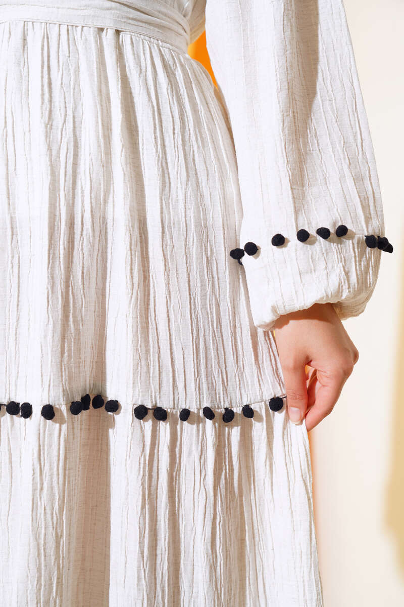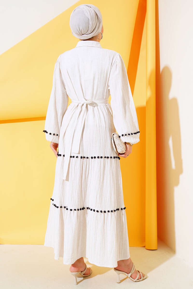 Boydan Düğmeli Yan Kemerli Tensel Elbise Taş
