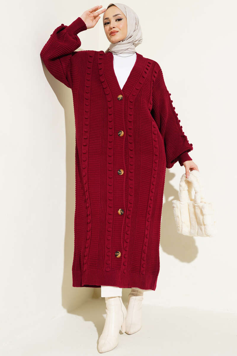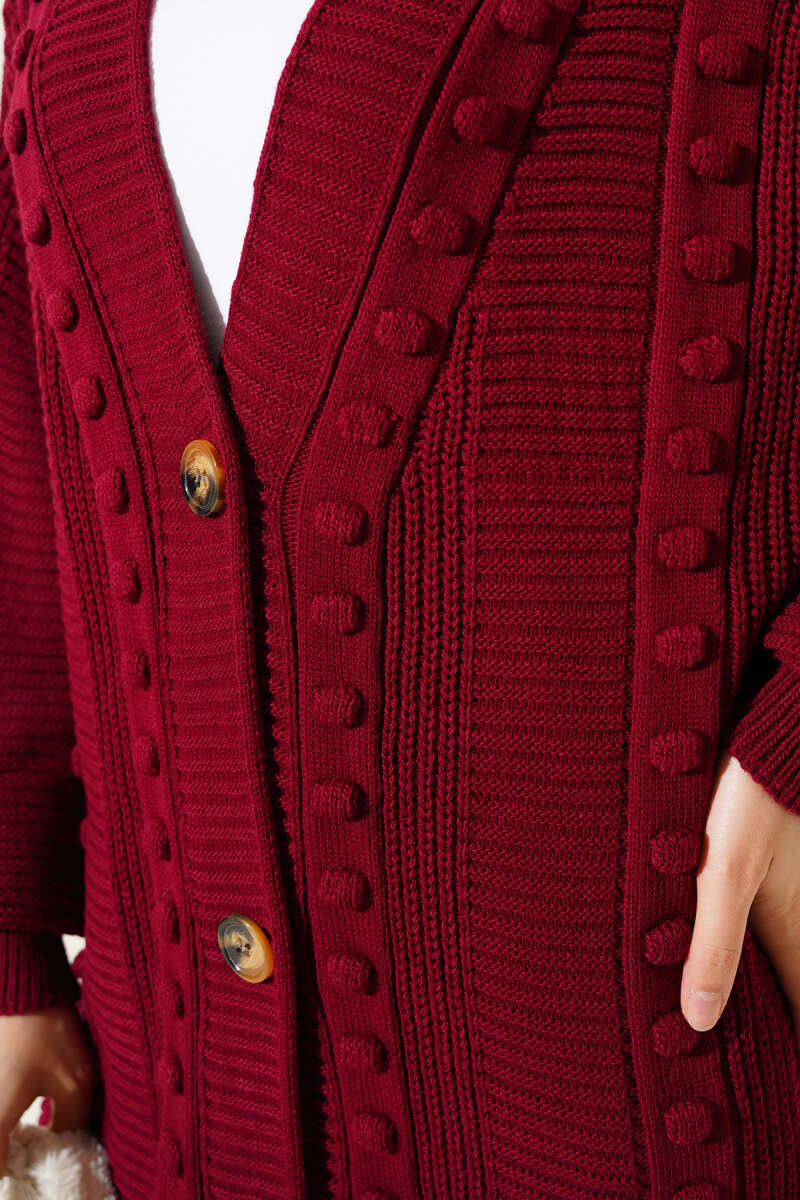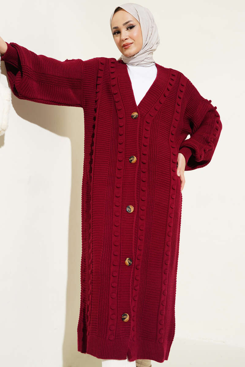 Pirinç Örgü Basic Triko Hırka Nar Çiçeği