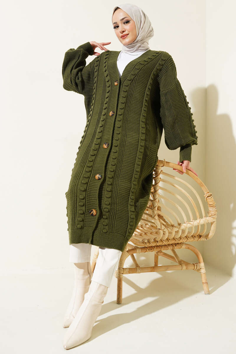 Pirinç Örgü Basic Triko Hırka Nar Çiçeği
