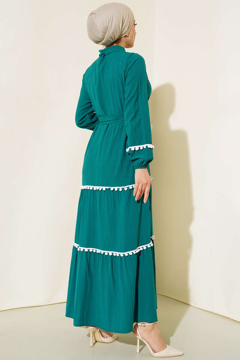Ponponlu Elbise Zümrüt Yeşili