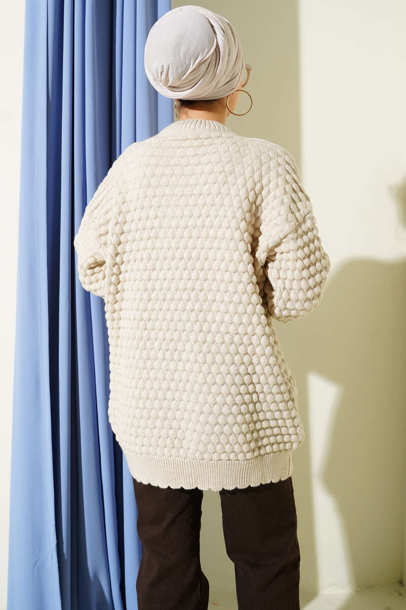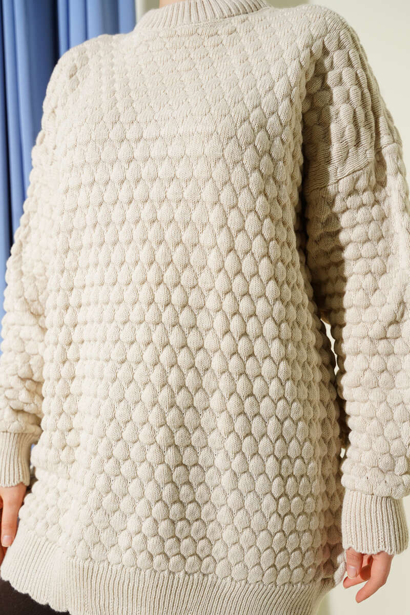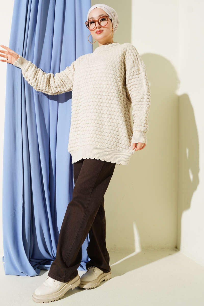 Popit Kabartmalı Triko Tunik Ekru