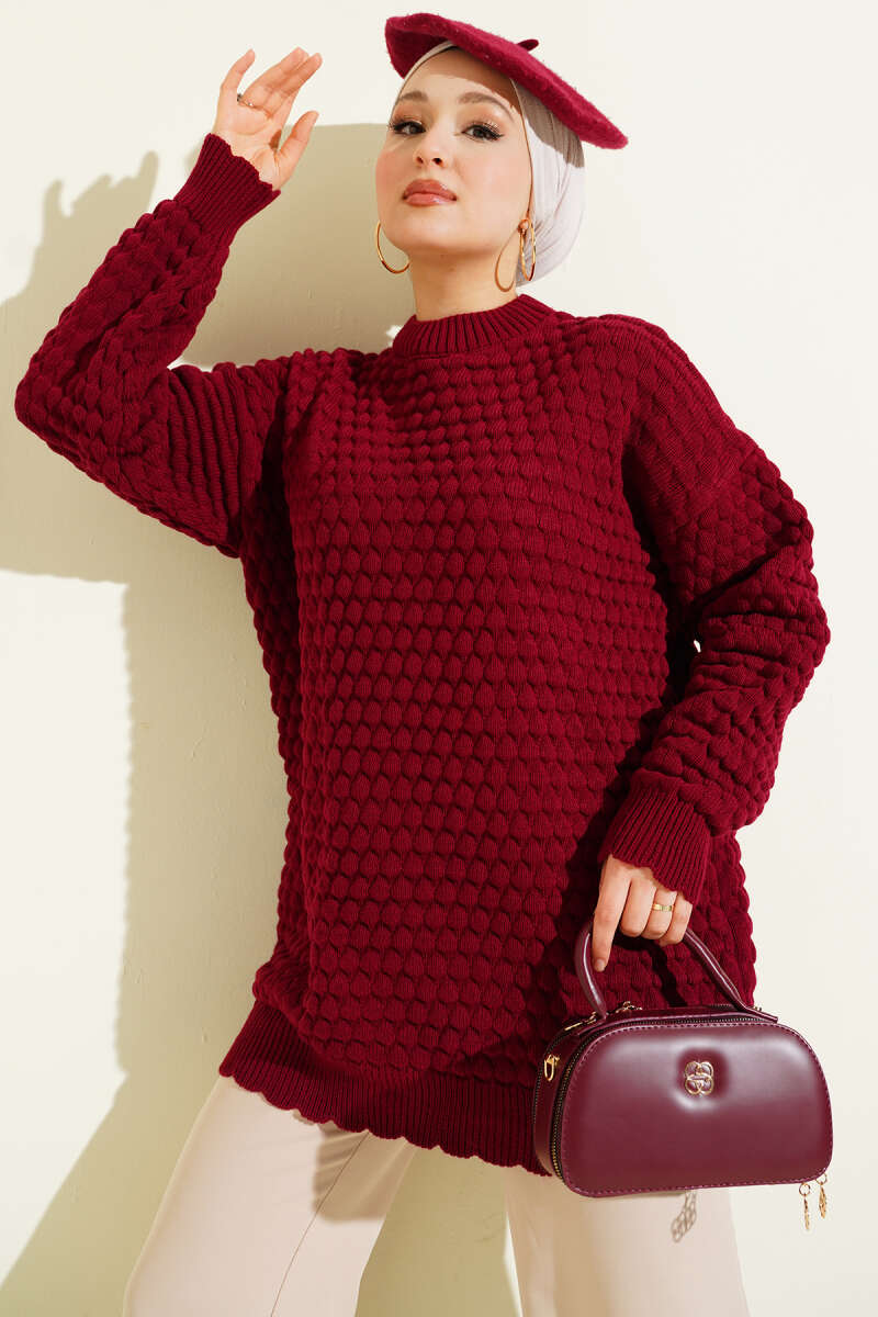 Popit Kabartmalı Triko Tunik Gül Kurusu