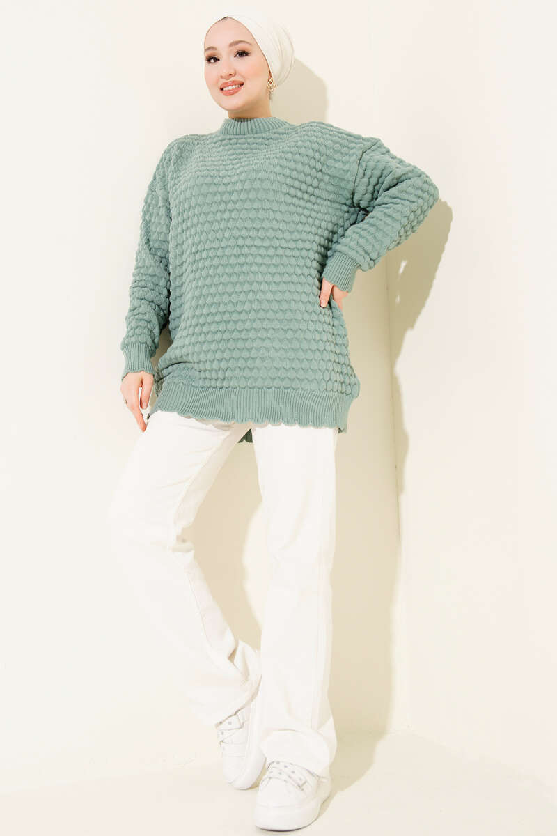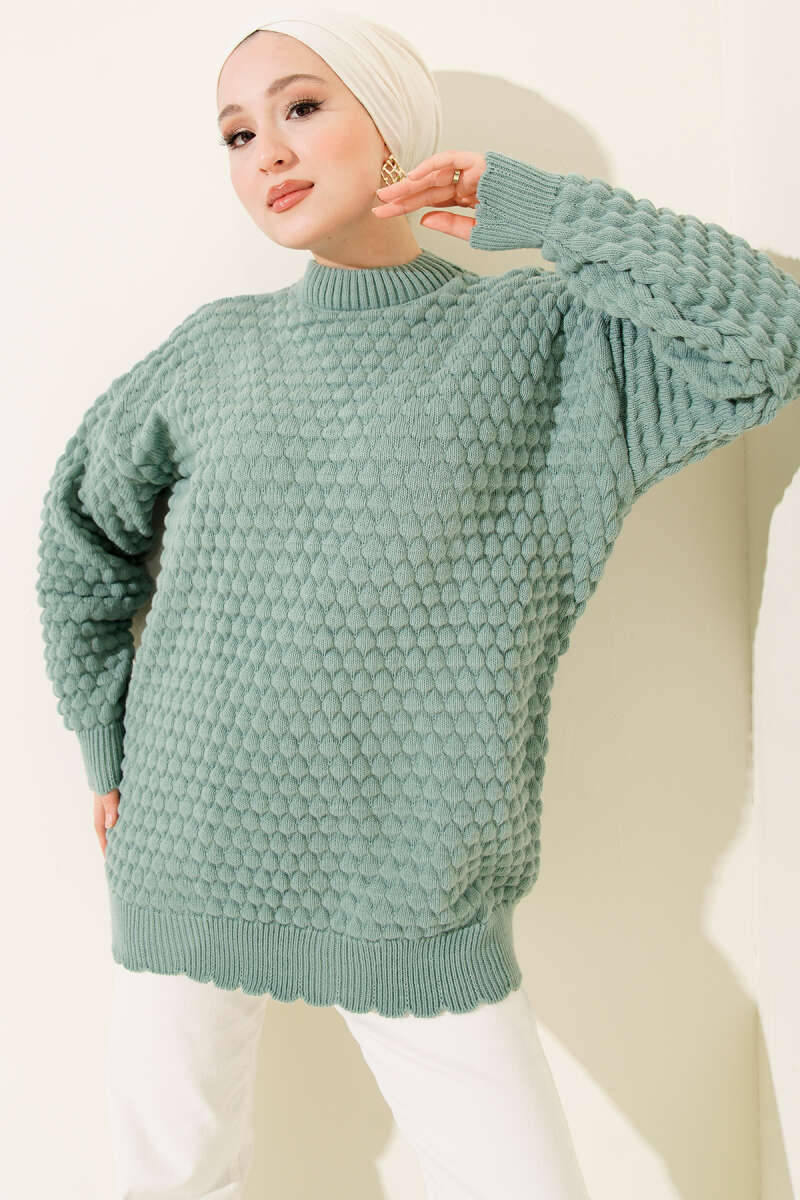Baklava Kabartma Salaş Triko Tunik Vizon