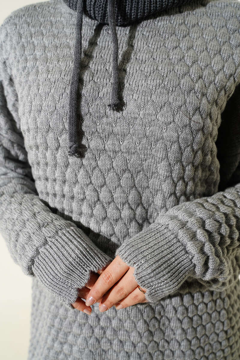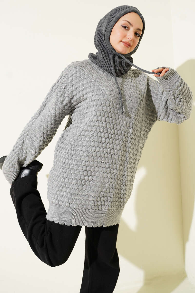 Popit Kabartmalı Triko Tunik Gri